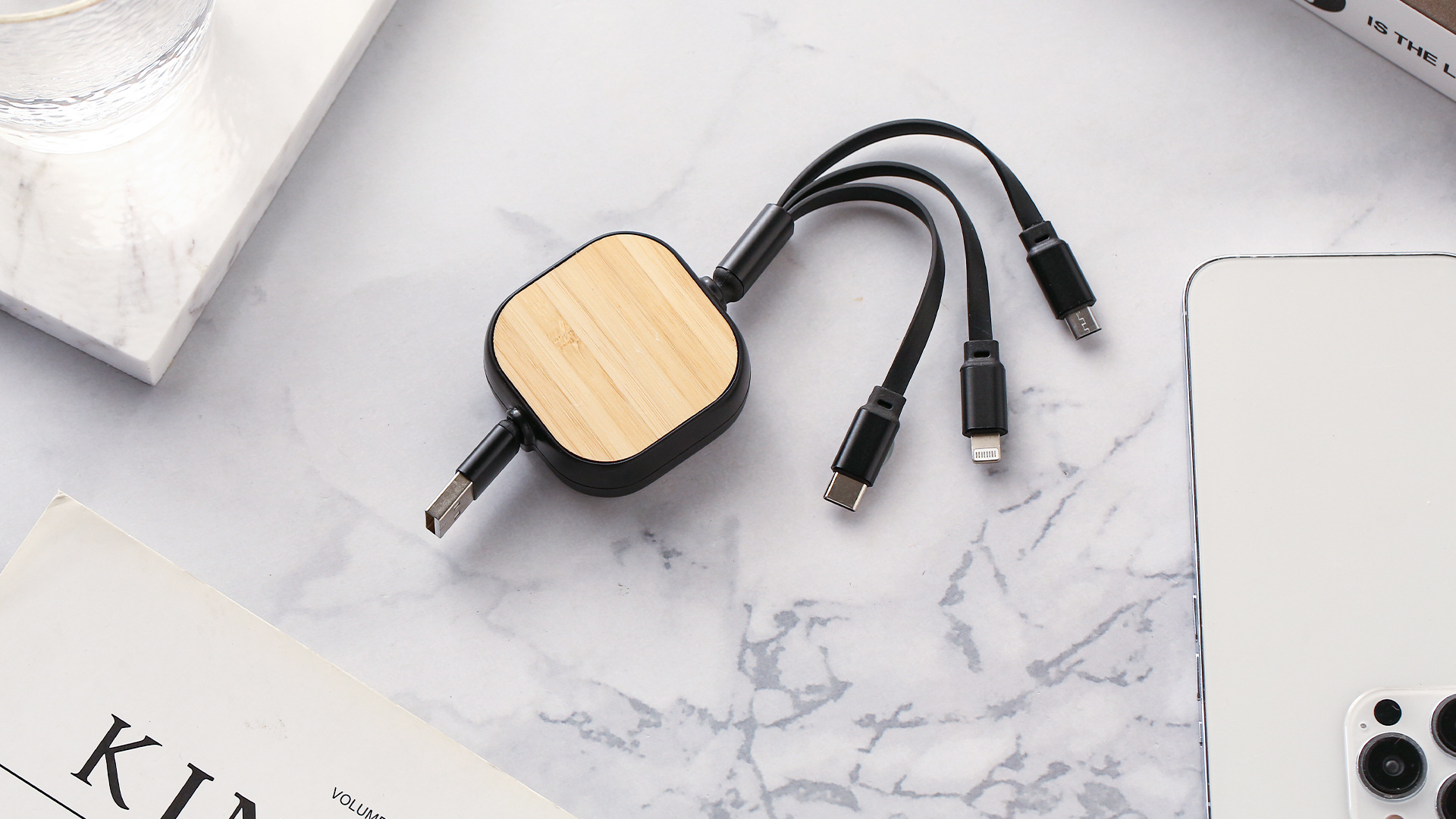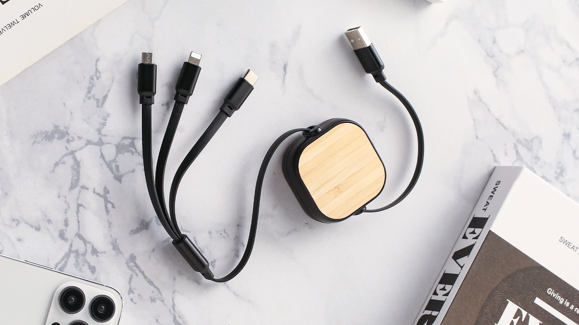 كابل شحن 3 في 1 مع شحن فائق السرعة 5 أمبير قابل للسحب