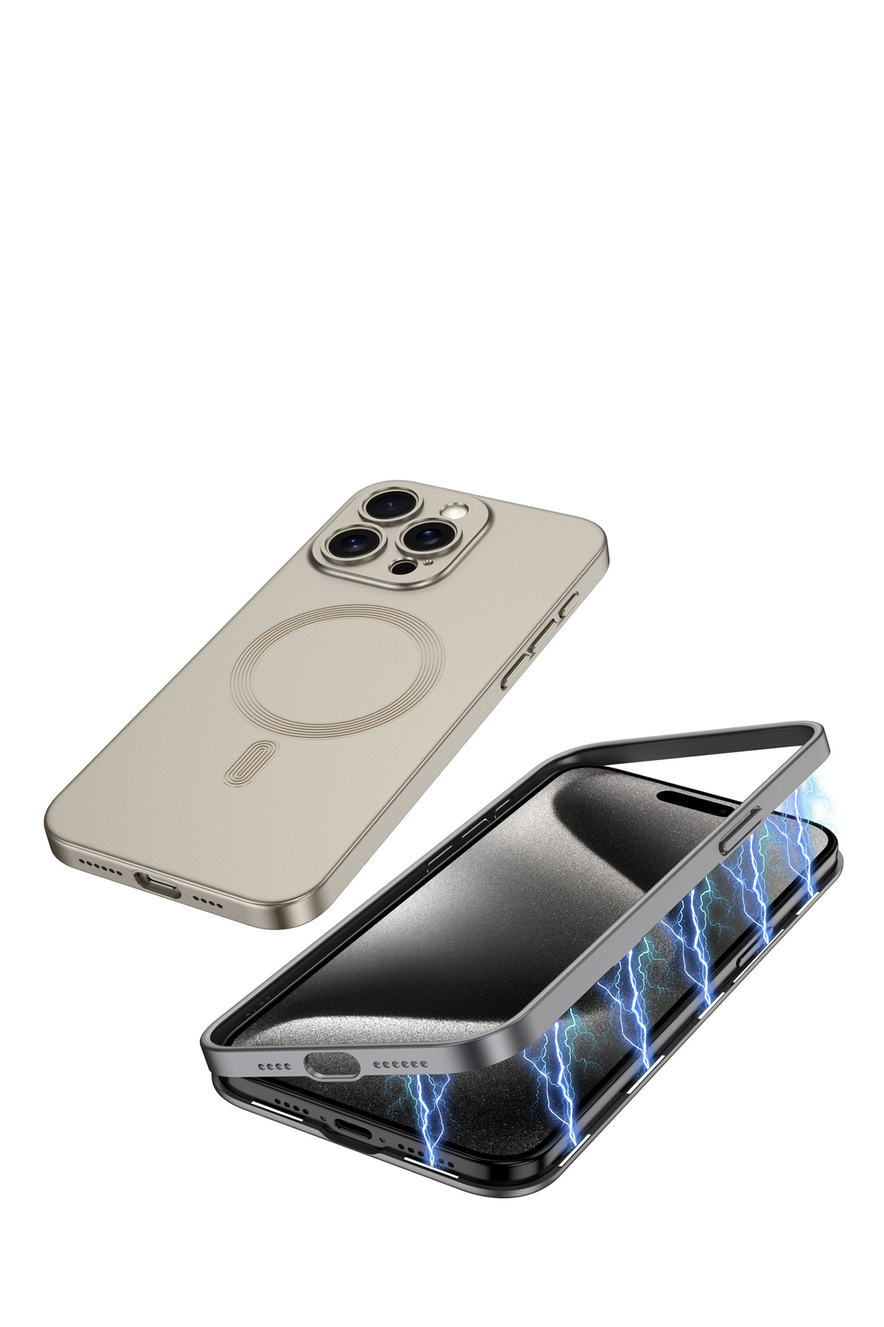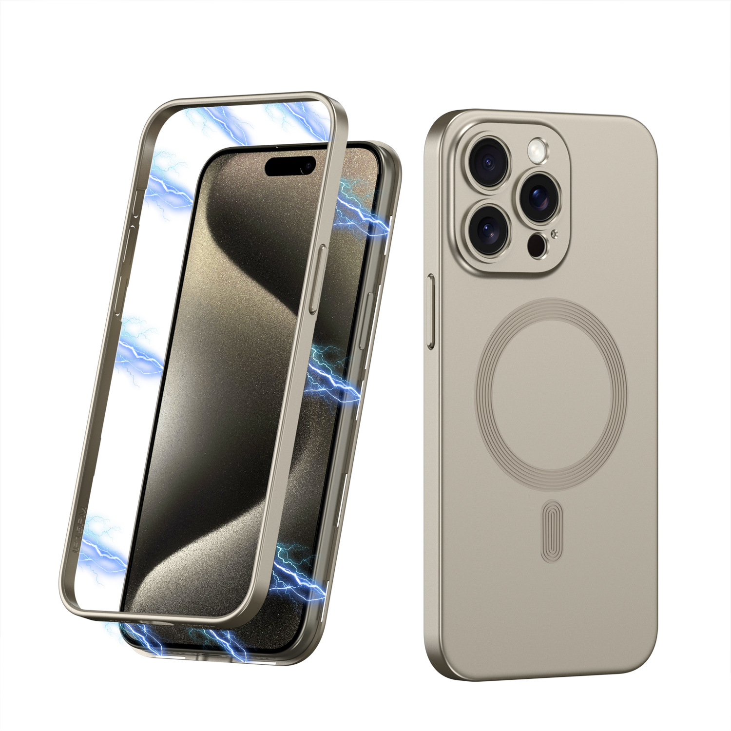 | وصف | كفر معدني مغناطيسي ملتصق داعم لا الشحن لجهاز ايفون 15 برو+ايفون 15 برو ماكس |