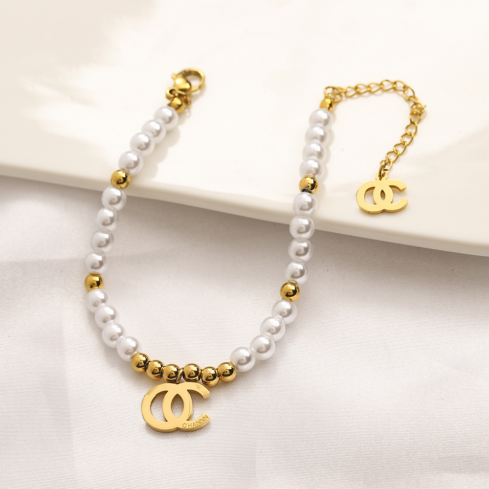 سوار يد بشكل حبات الؤلؤه واندماج احرف CC