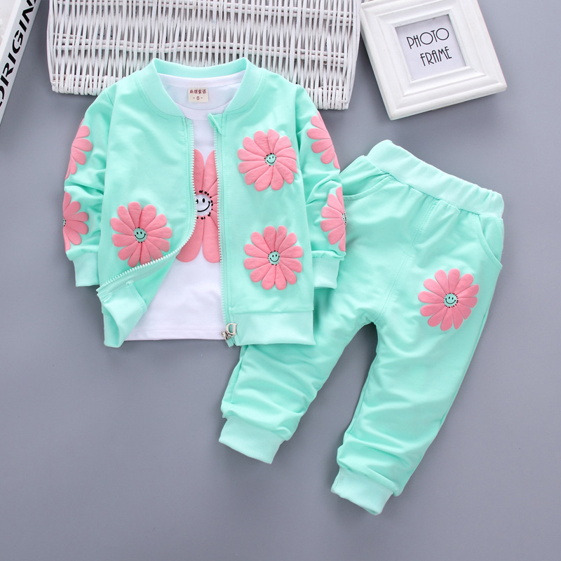 طقم بناتي مكون من ثلاث قطع -أخضر فاتح