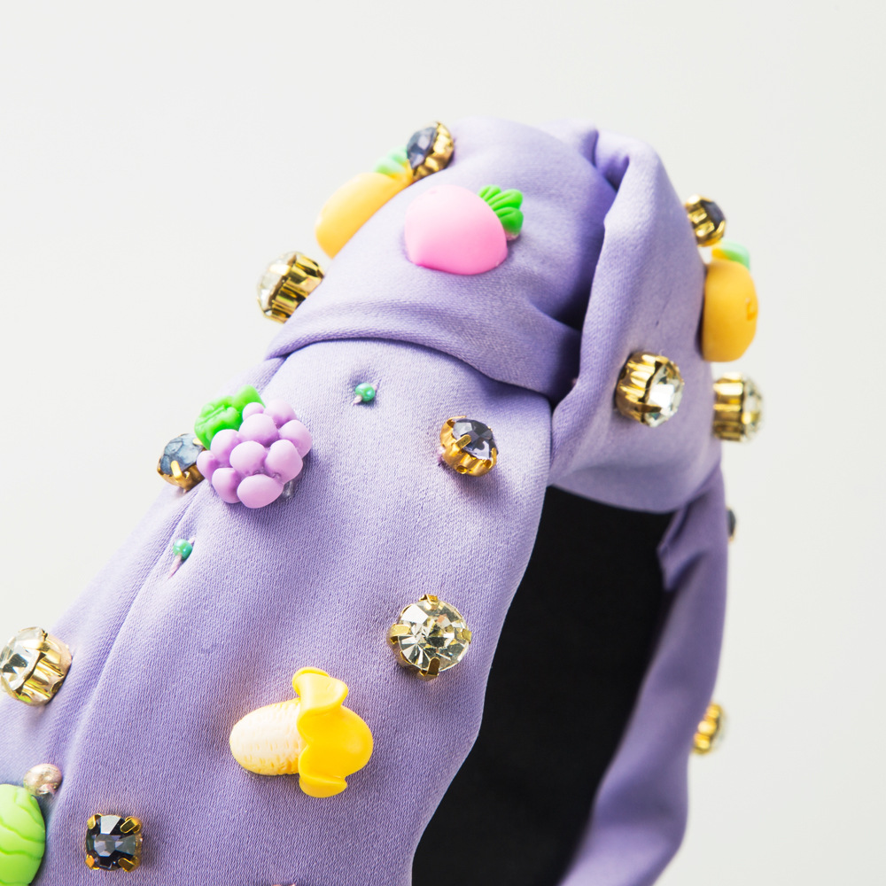 طوق شعر بنمط كوري مرصع بالفواكة وأحجار الراين للفتيات