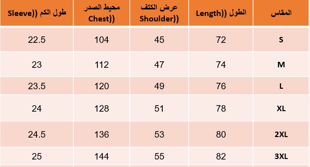 | المقاس | S - M - L - XL - 2XL - 3XL |