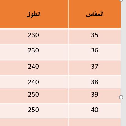 | المقاس | 35 - 36 - 37 - 38 - 39 - 40 |