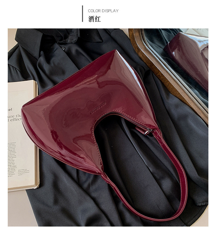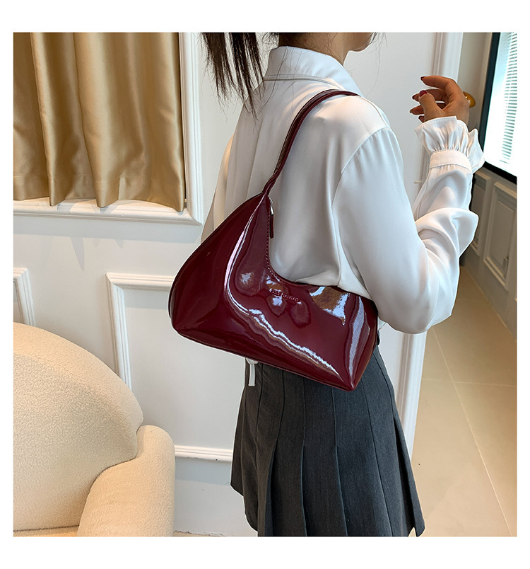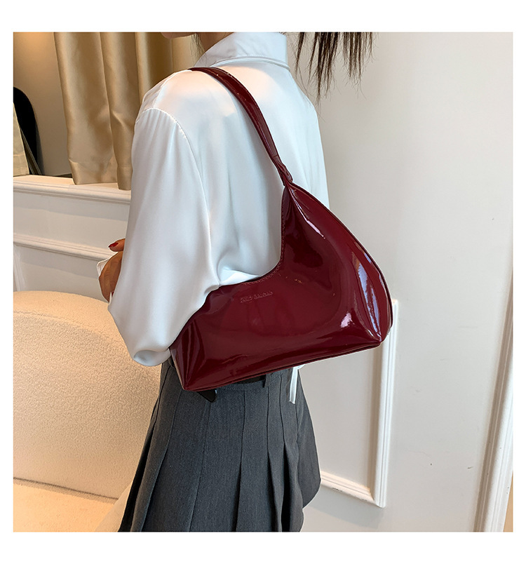 حقيبة كتف للسيدات هلالية من الجلد اللامع