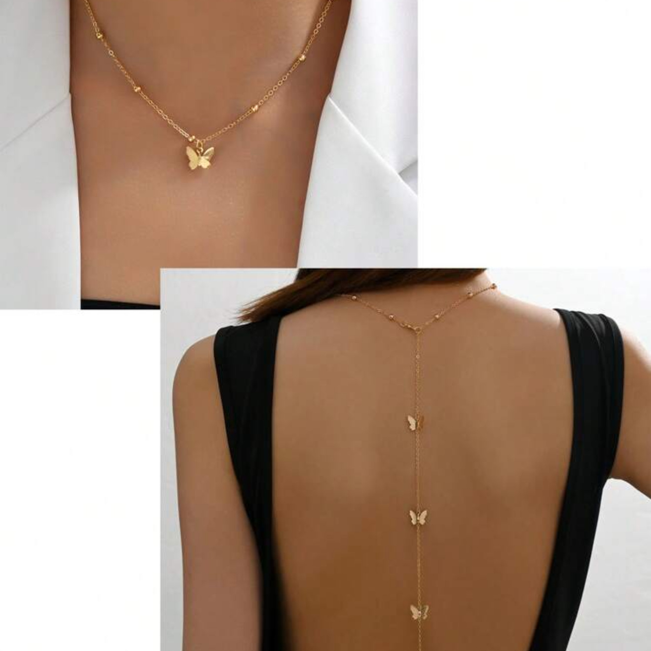 قلادة سلسلة ظهر مثيرة من سبائك على شكل فراشة