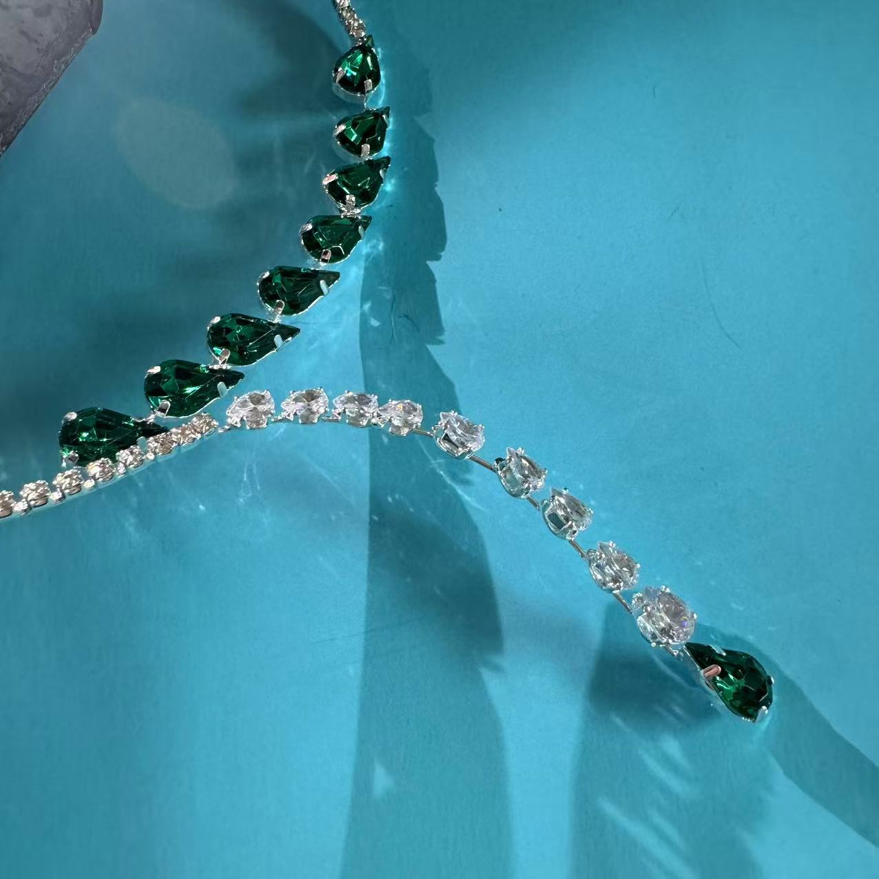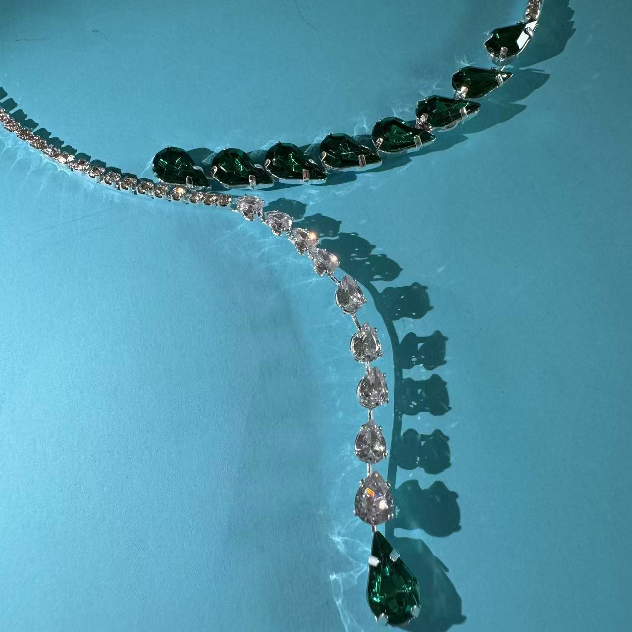 قلادة عنق قلادة قطرة بزمرد فاخرة قطعة واحدة، مناسبة لارتداء المرأة في المناسبات