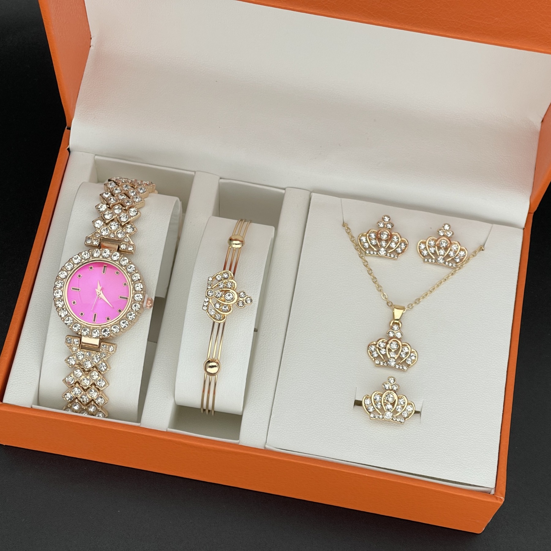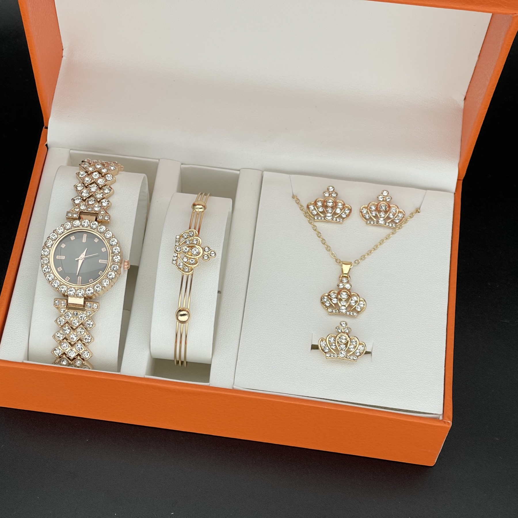 ساعة مع طقم إكسسوارات نسائية من سبائك الزنك