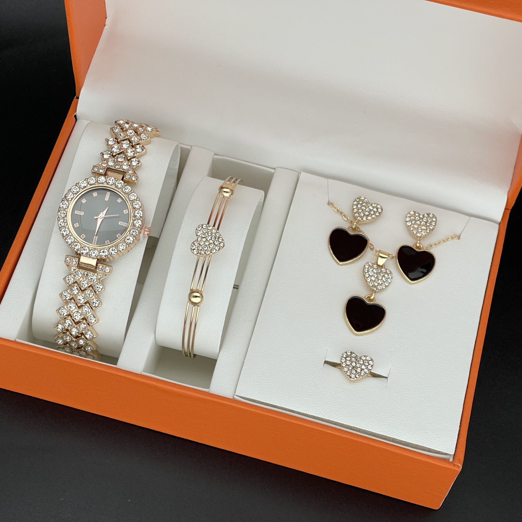 ساعة كوارتز نسائية مع إكسسوارات مرصعة بااحجار الراين