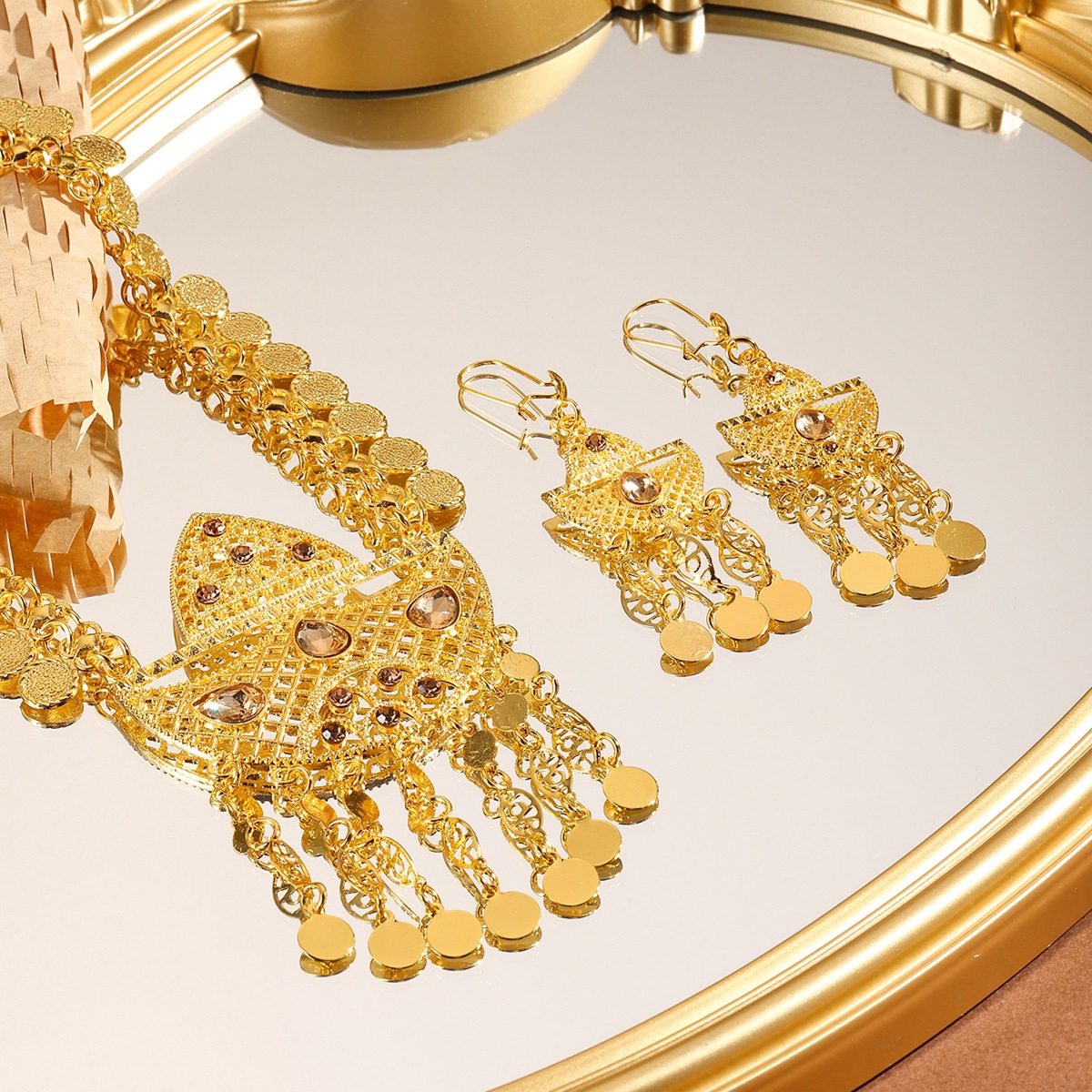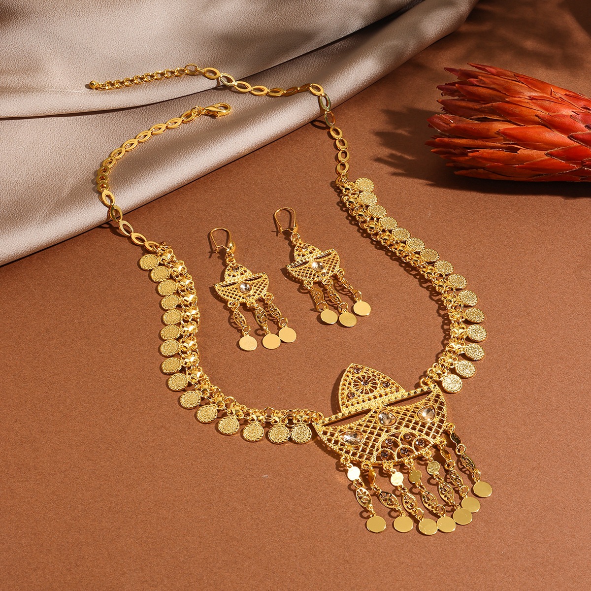 طقم مجوهرات من سبائك الذهب على شكل عملات معدنية