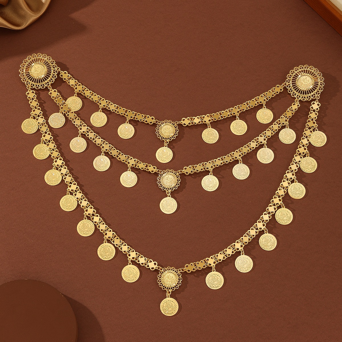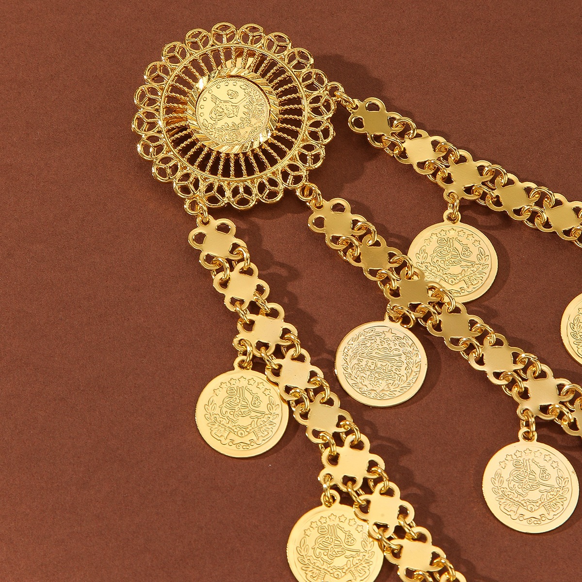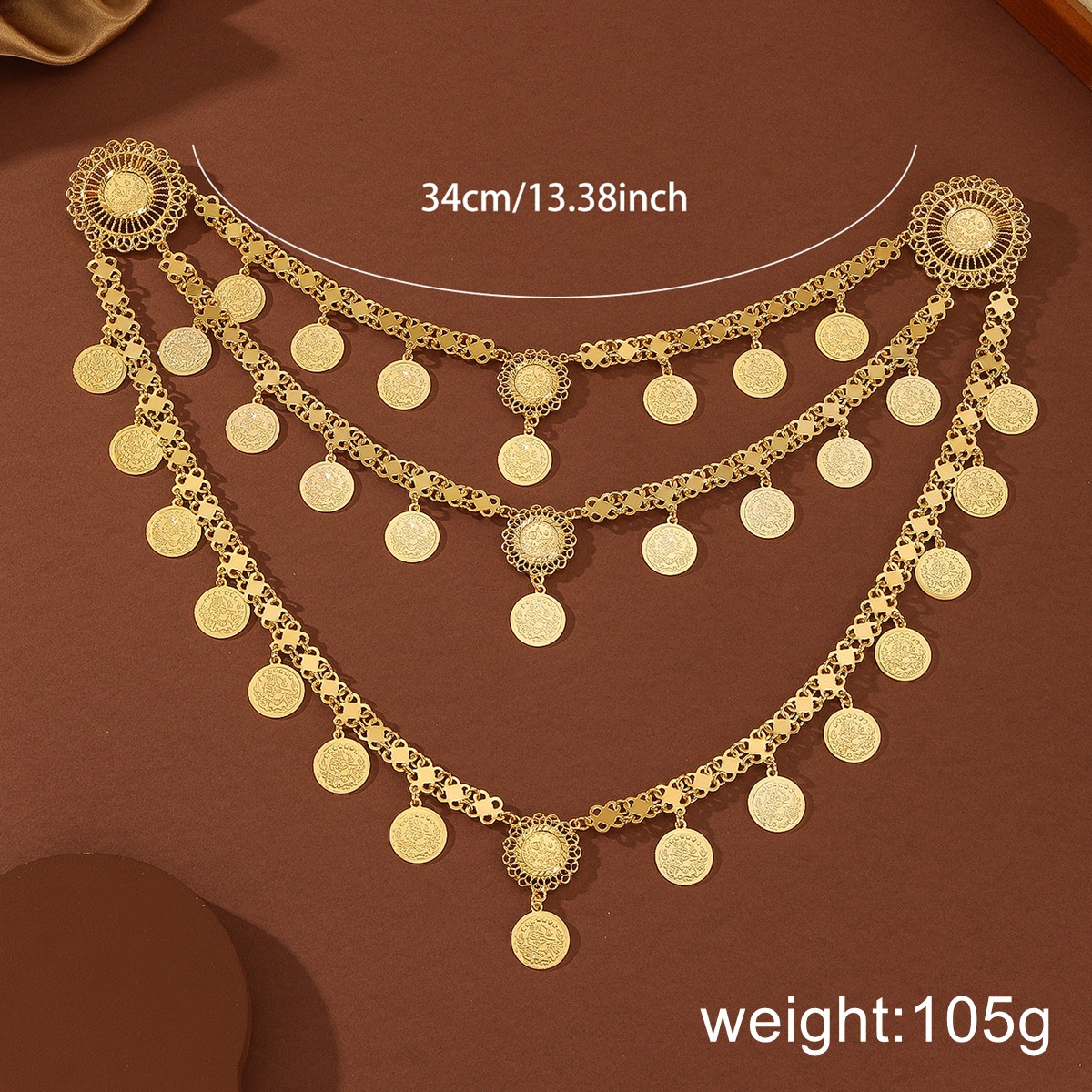 قلادة زينة مجوفة متعددة الطبقات على شكل عملة معدنية للنساء