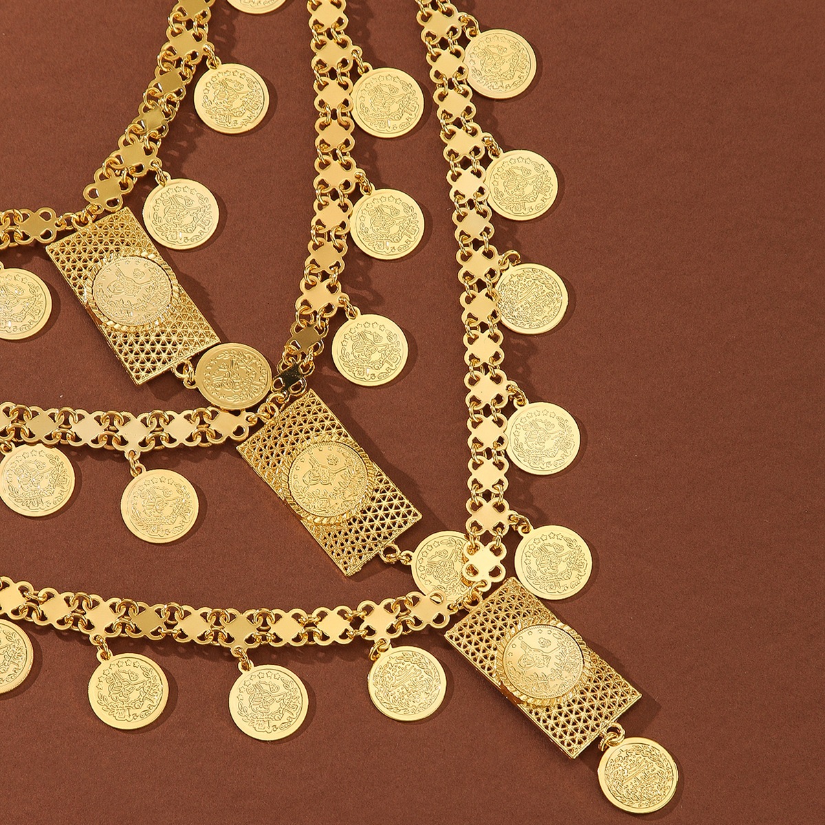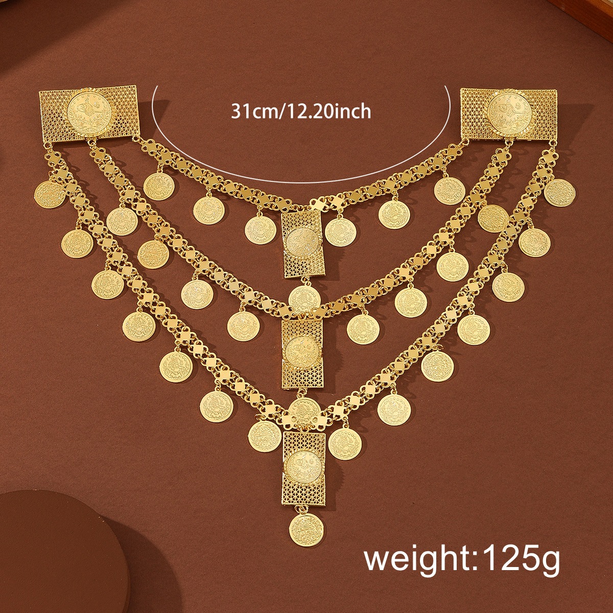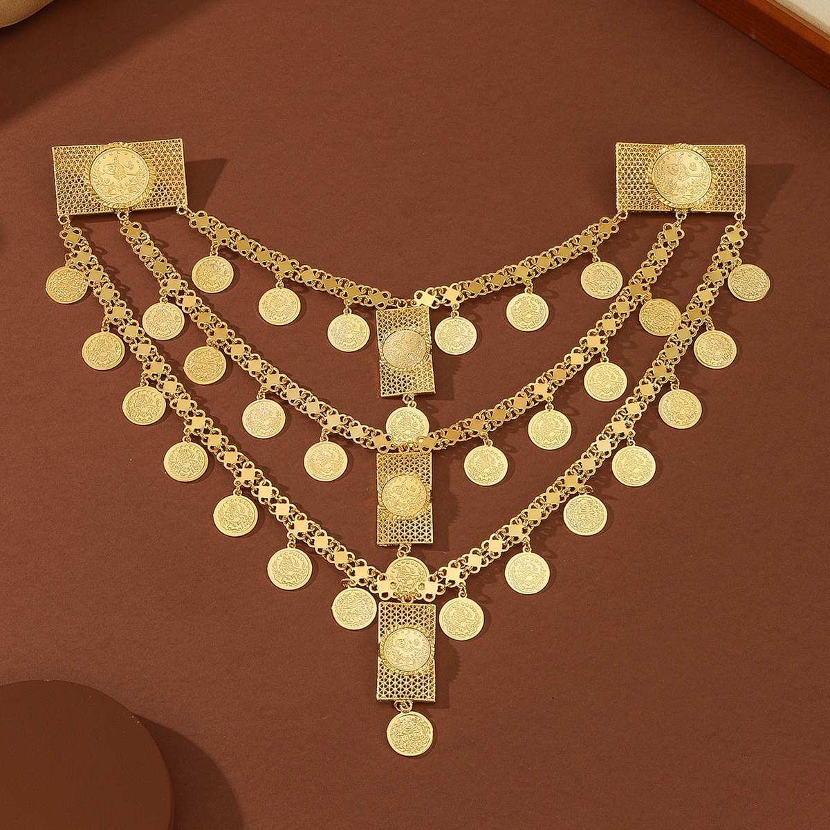 قلادة على شكل سلسلة من الذهب العربي لتزيين الملابس على شكل عملات معدنية متعددة الطبقات