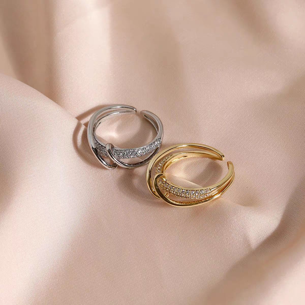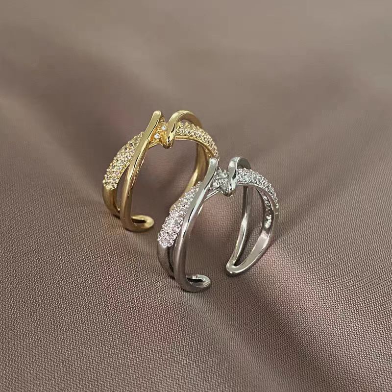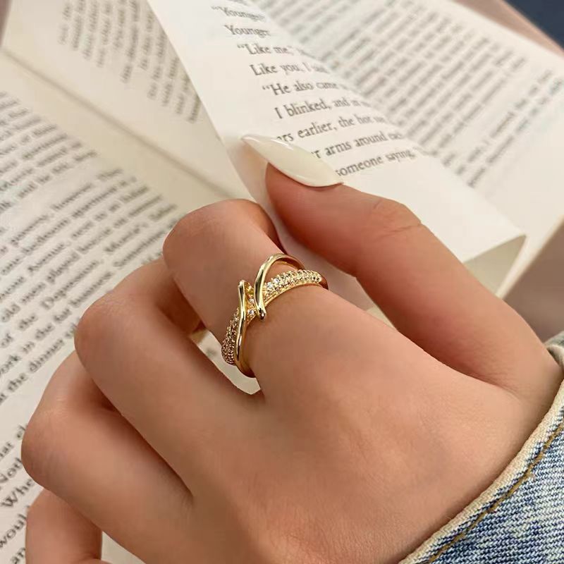 خاتم زركون بتصميم ياباني وكوري بسيط وخفيف الوزن مفتوح