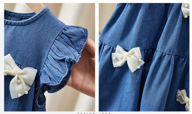 فستان جينز للبنات صيفي لطيف على البشرة بأكمام طائرة