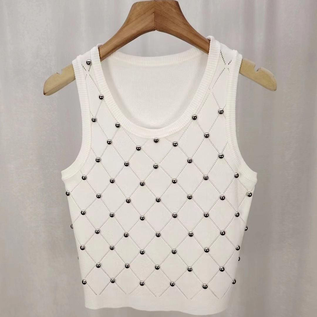 سترة محبوكة رفيعة ذات طابع عصري للربيع والصيف بدون أكمام