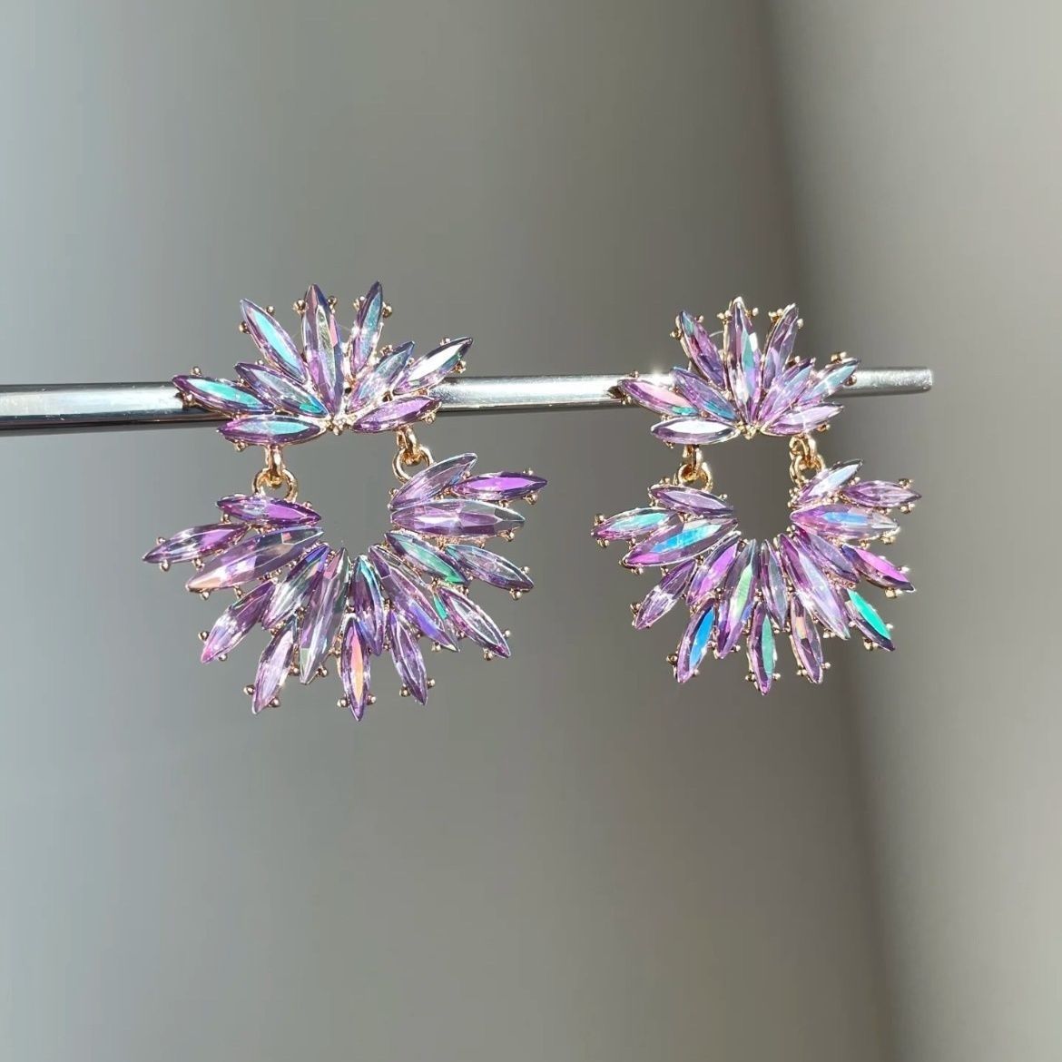 أقراط زهرة الدوبامين الأرجوانية للنساء