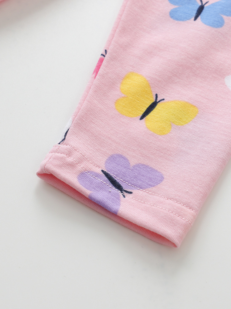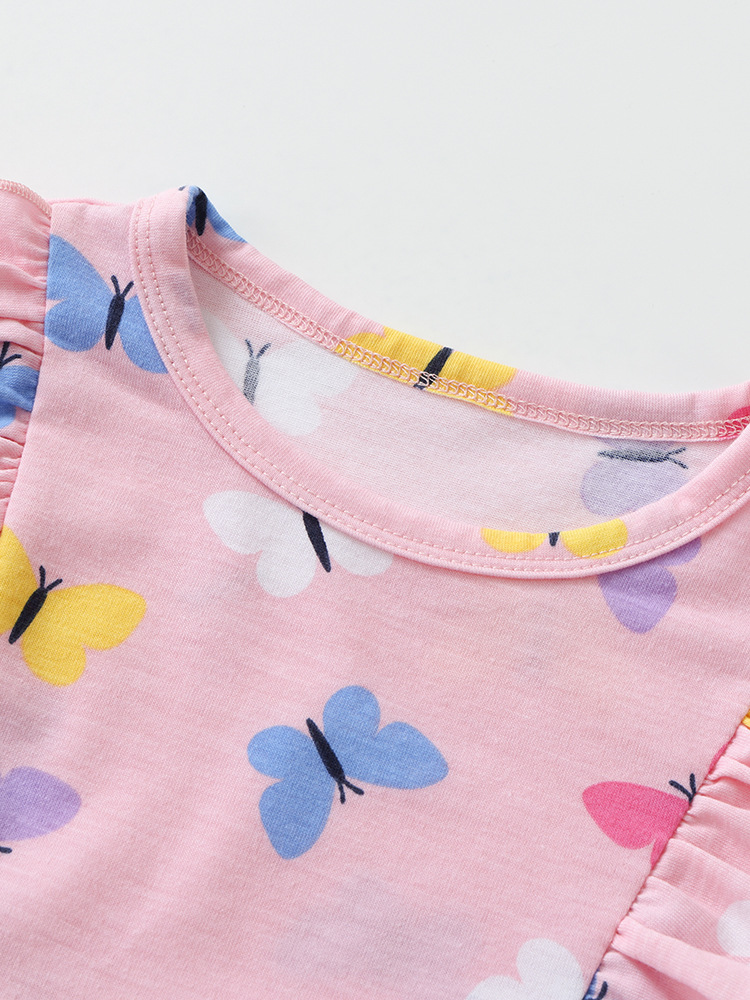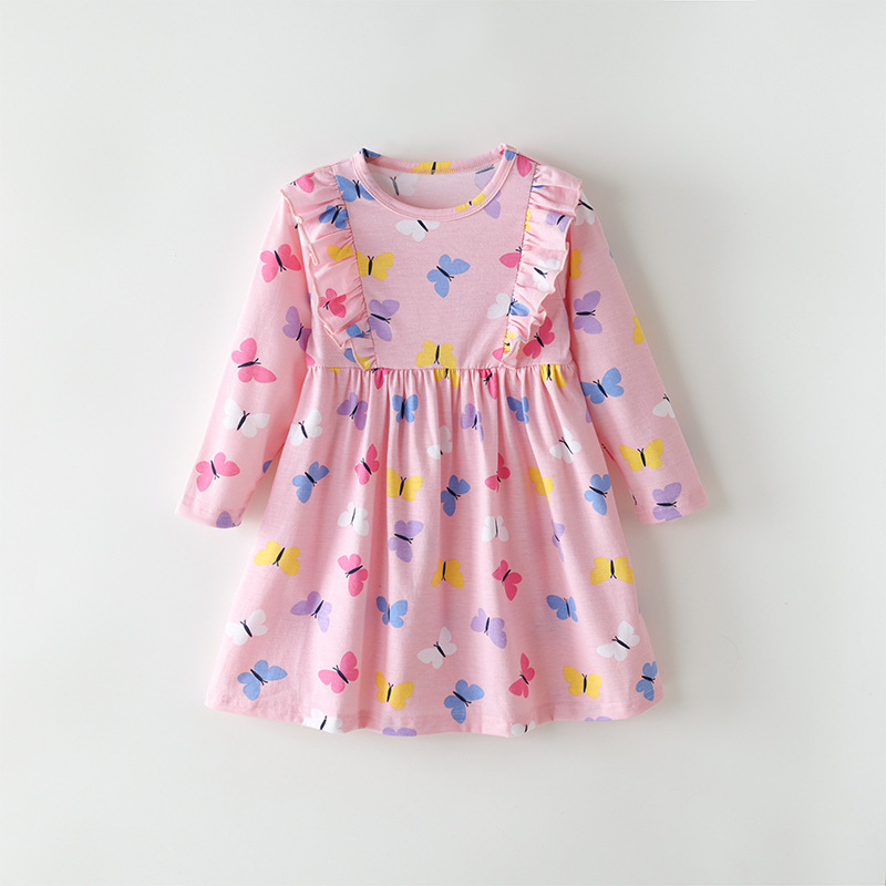 فستان بناتي أنيق بطبعة فراشات برقبة مستديرة وأكمام طويلة للأطفال