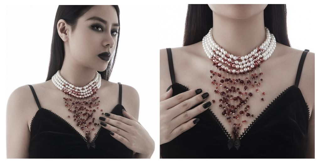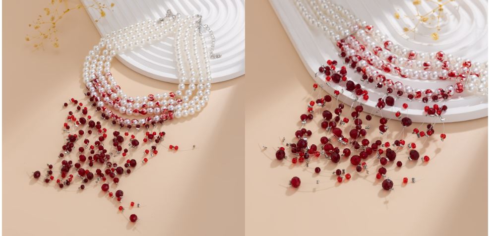 قلادة لؤلؤ على شكل قطرة دم للسيدات