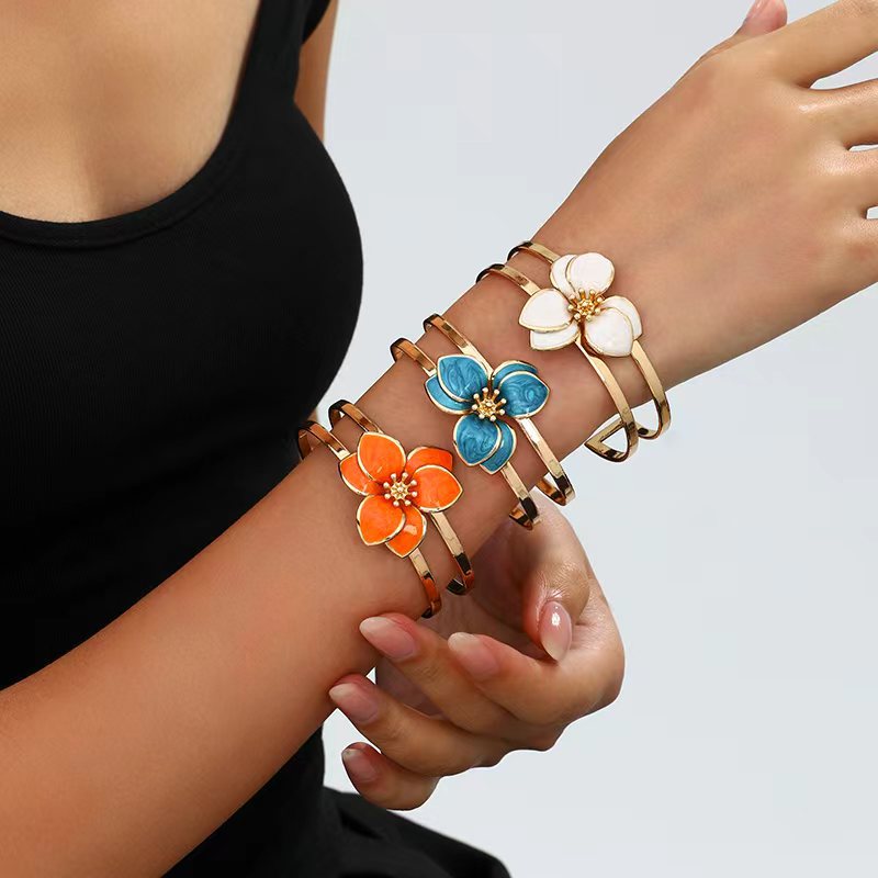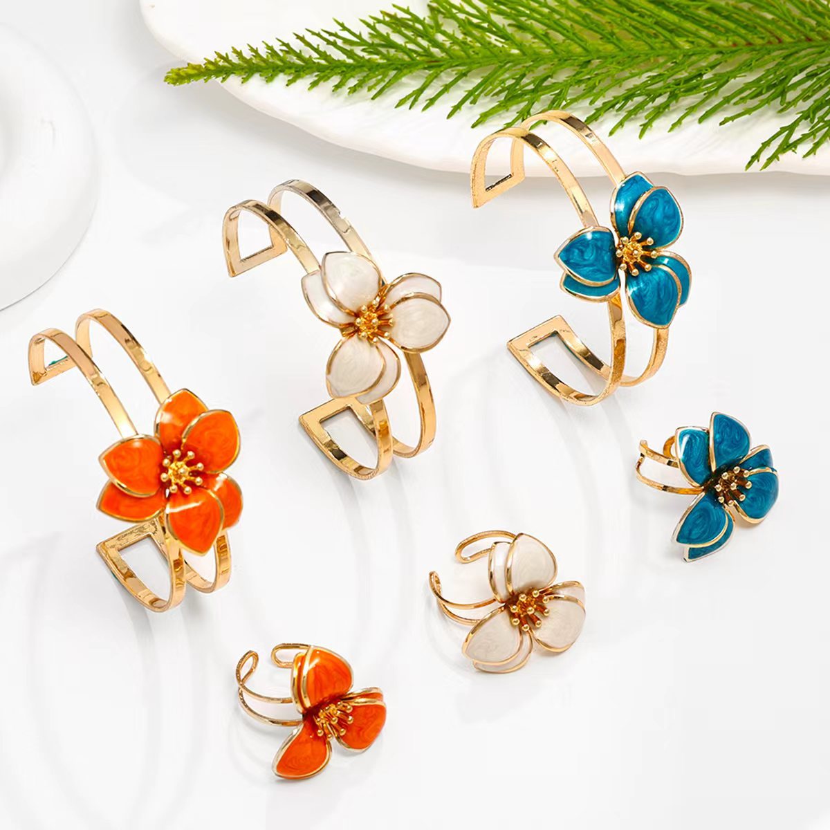 مجموعة خواتم وأساور على شكل زهرة زيتية للسيدات