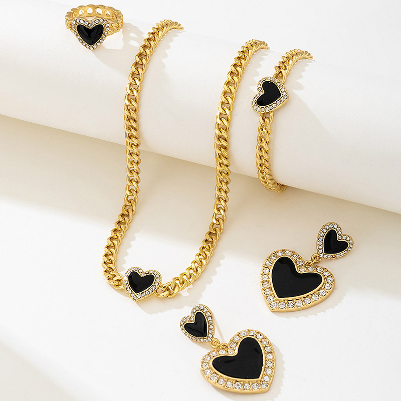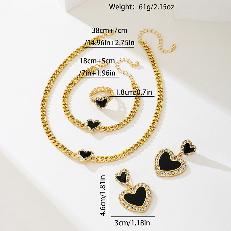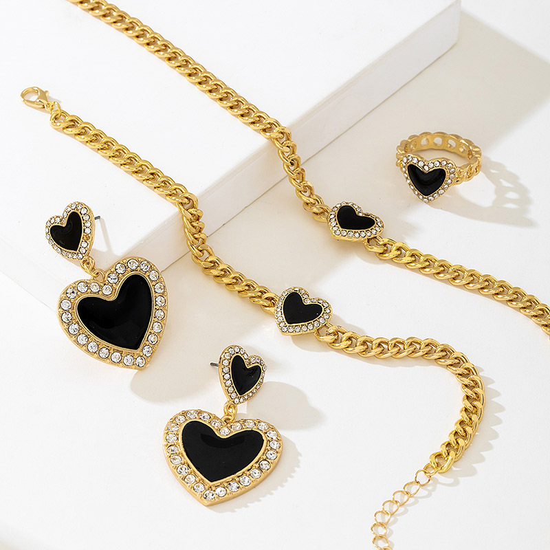 طقم أقراط وقلادة وأساور على شكل قلب أنيق
