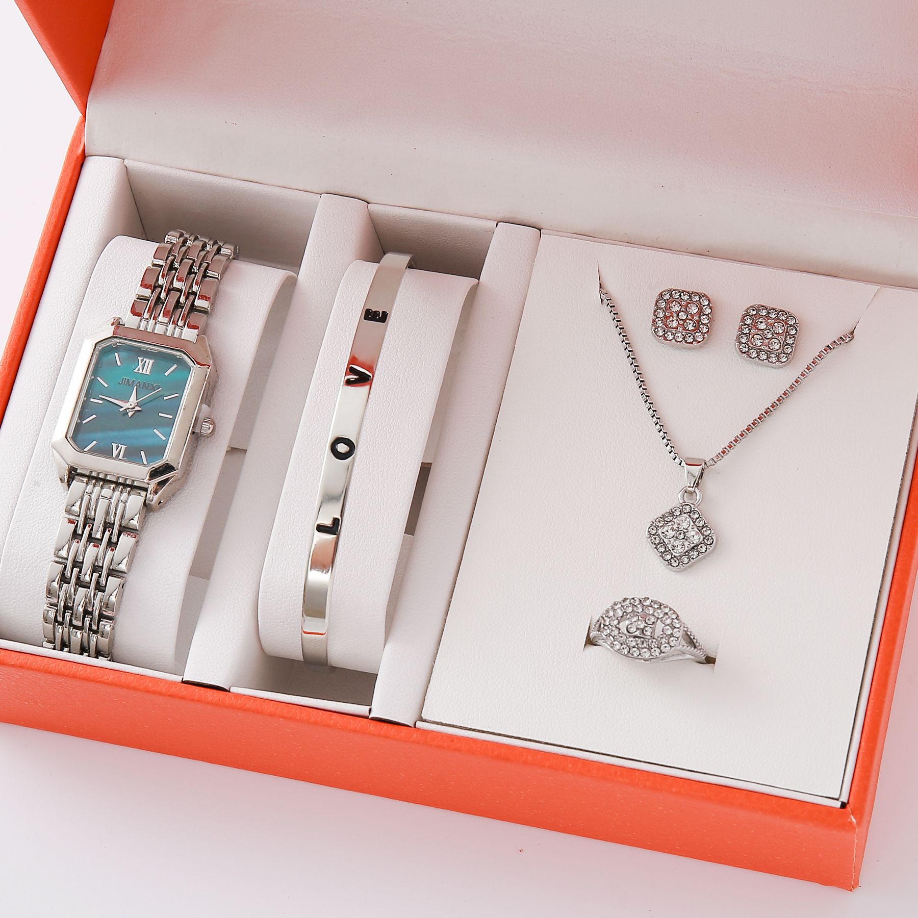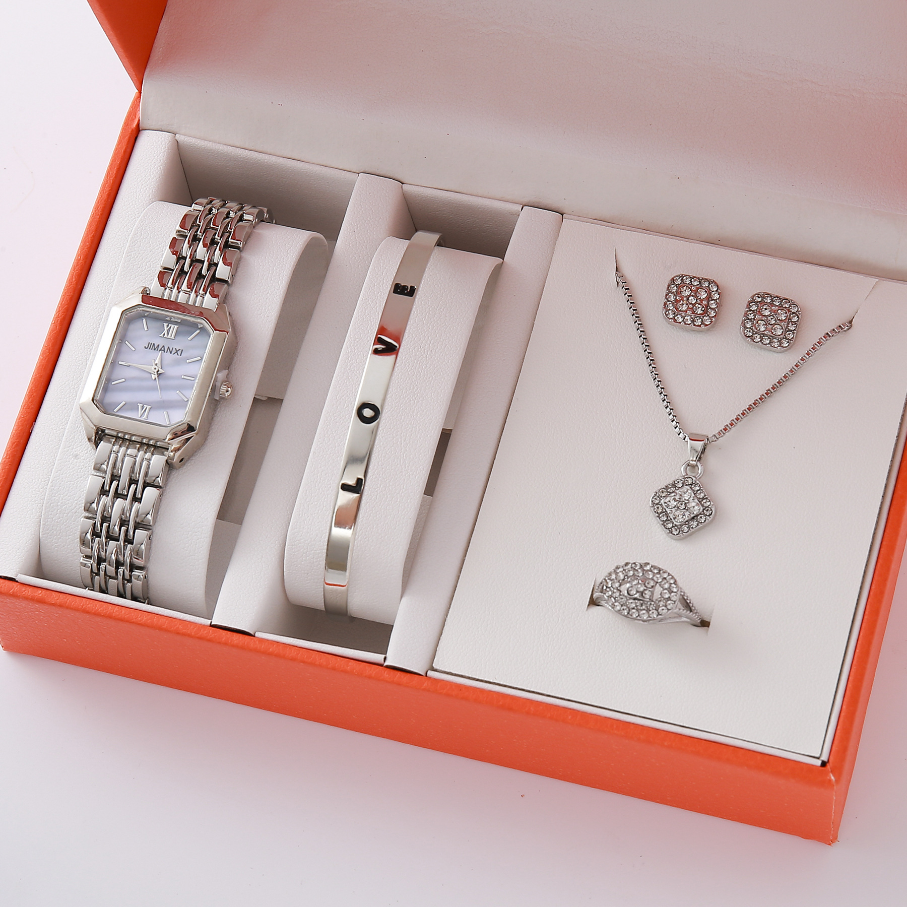 طقم ساعة يد كوارتز مربعة أنيقة مع إكسسواراتها