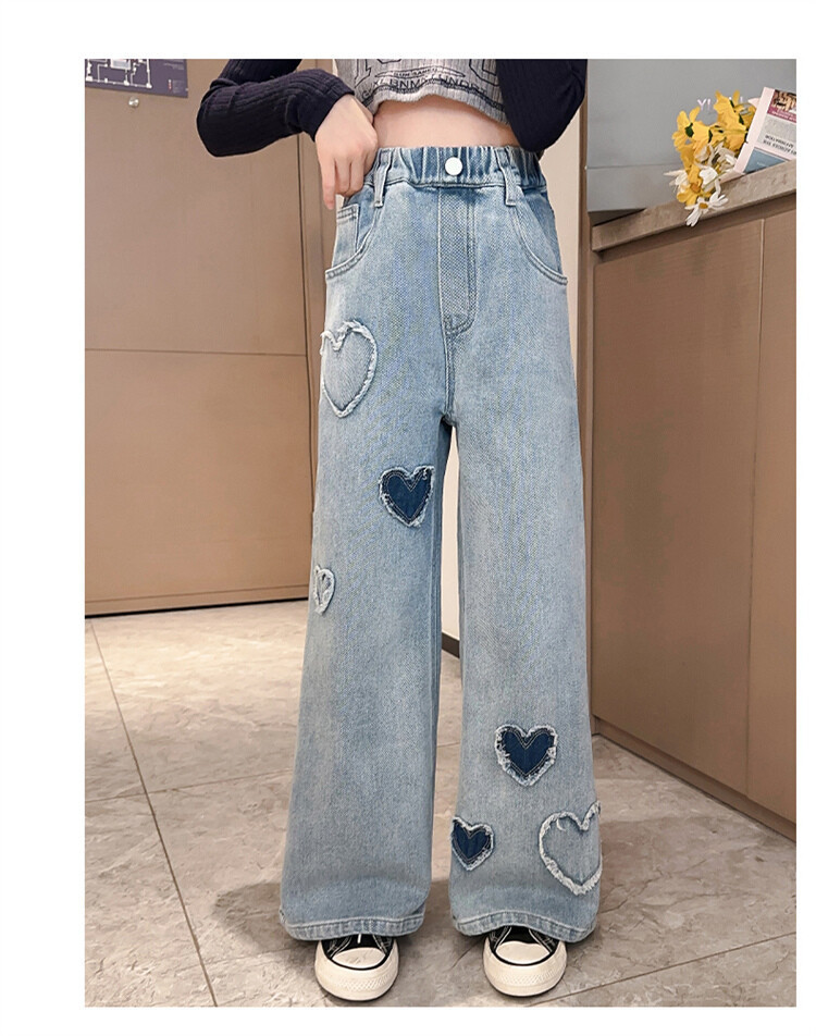 بنطلونات جينز واسعة الساق مستقيمة للبنات