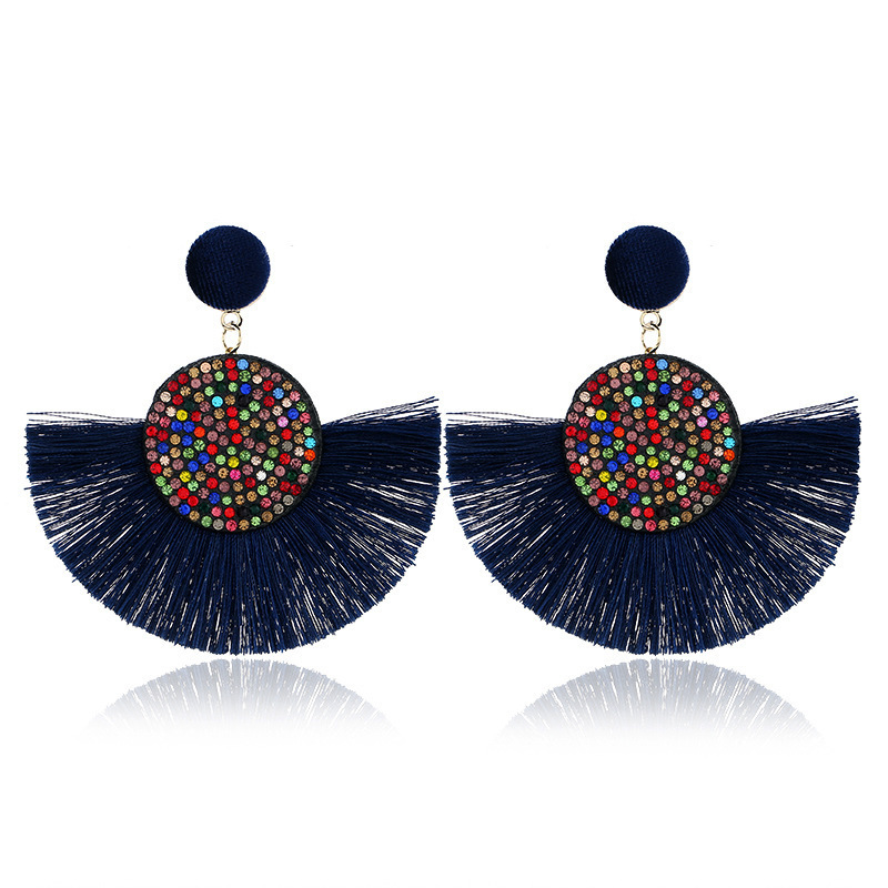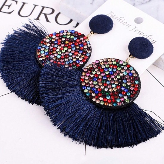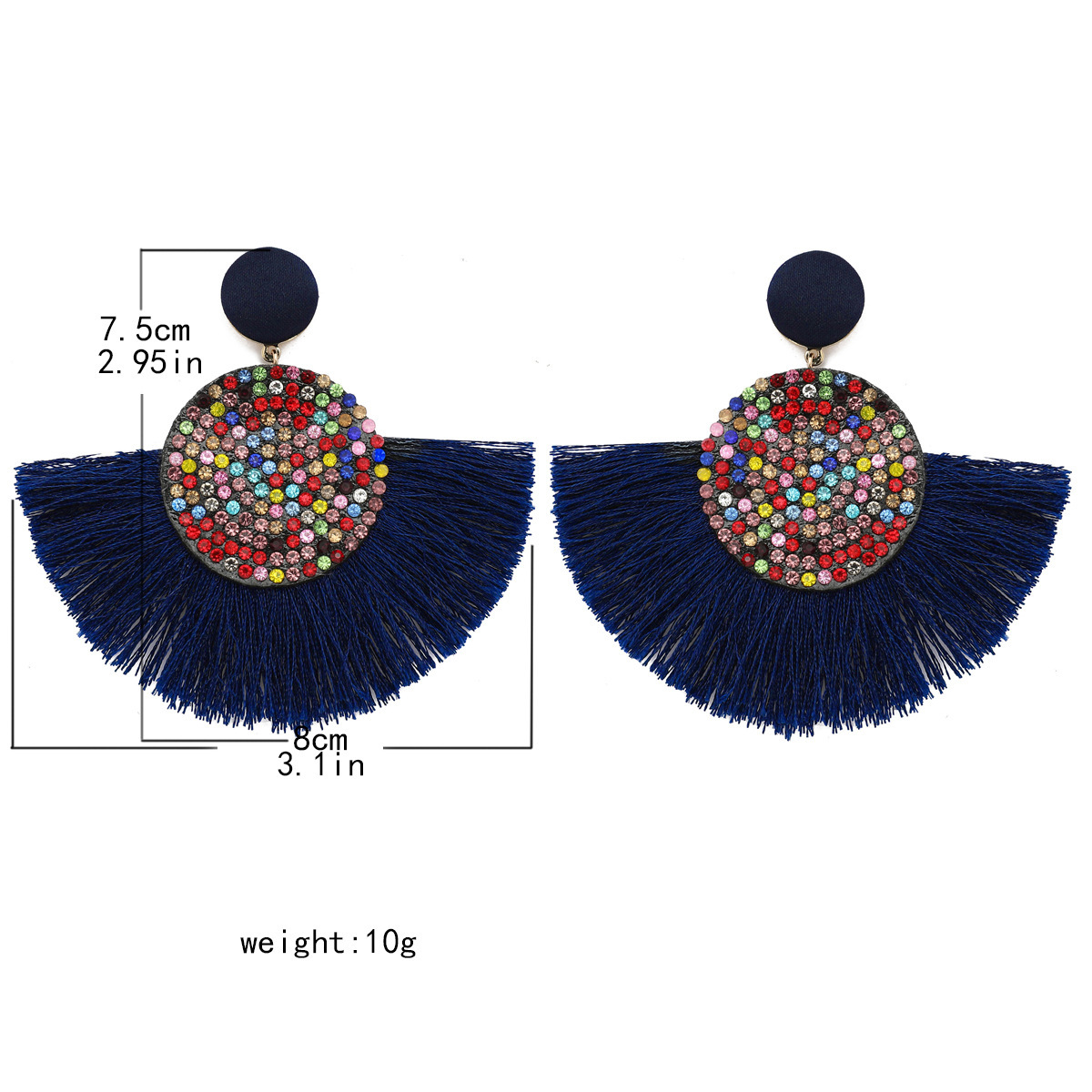 أقراط شرابة على شكل مروحة من أحجار الراين مبالغ فيها