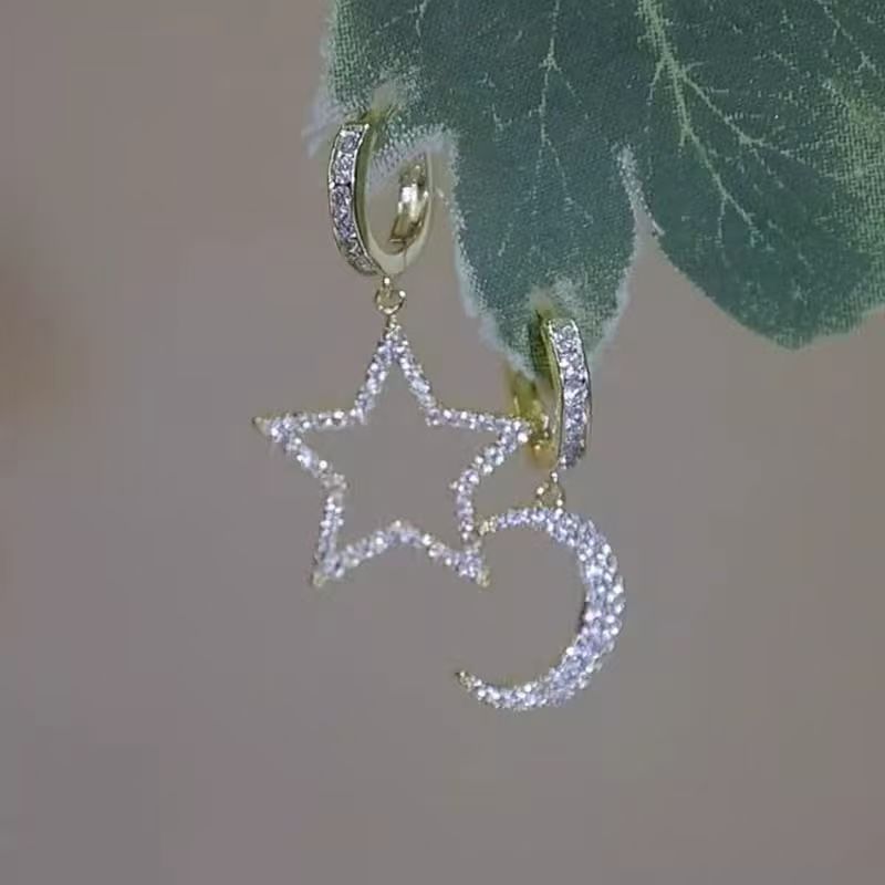 أقراط مرصعة بالألماس على شكل نجمة وقمر خفيفة الوزن