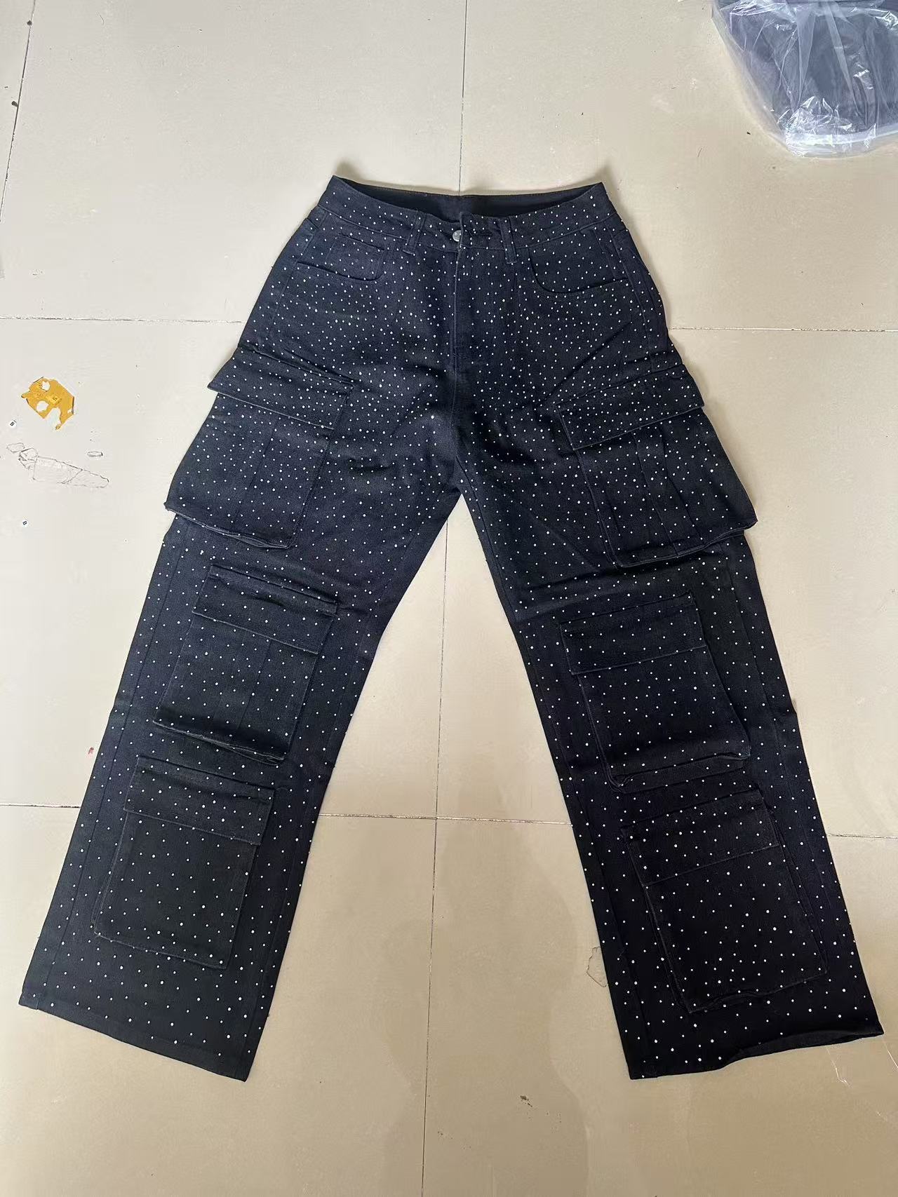 بنطلون نسائي واسع الساقين مزين بااحجار الراين
