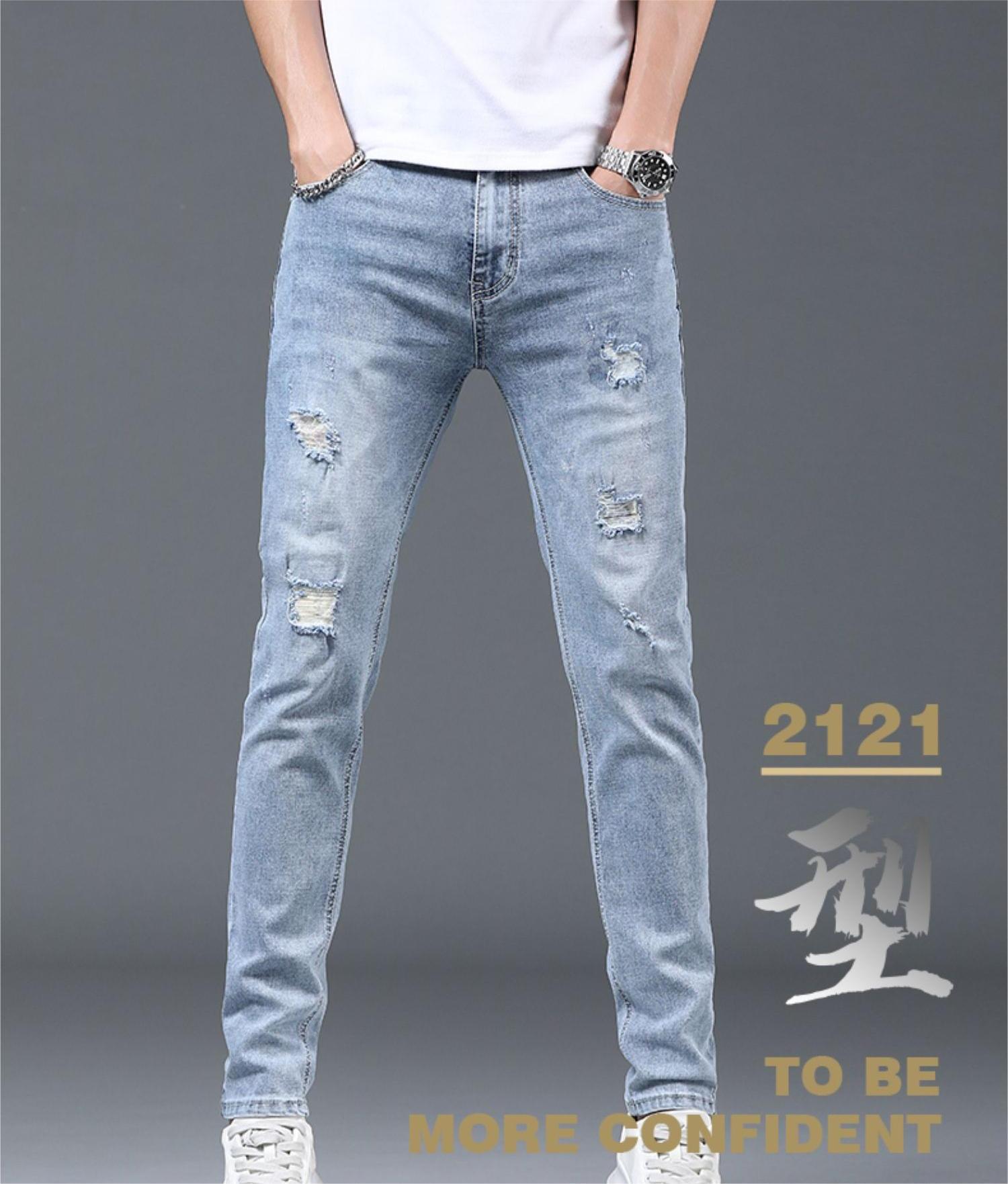 بنطلونات جينز رجالية فاتحة اللون ضيقة