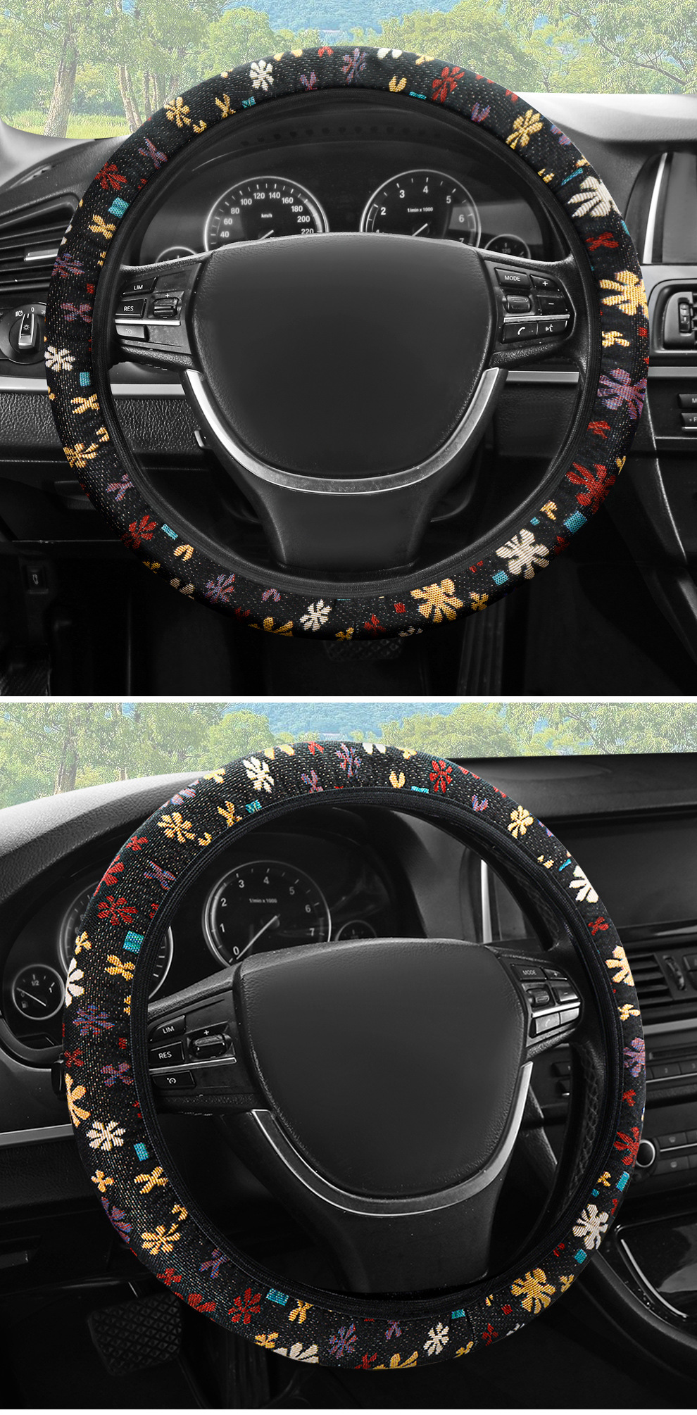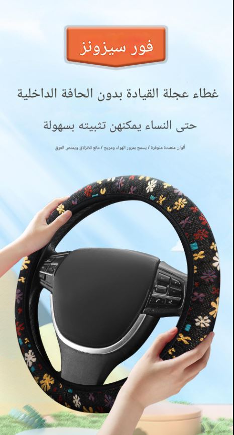| ميزات خاصة | غطاء عجلة قيادة السيارة من الكتان مناسب لجميع الفصول، غطاء واقٍ من قماش حرير الثلج الناعم المرن، |