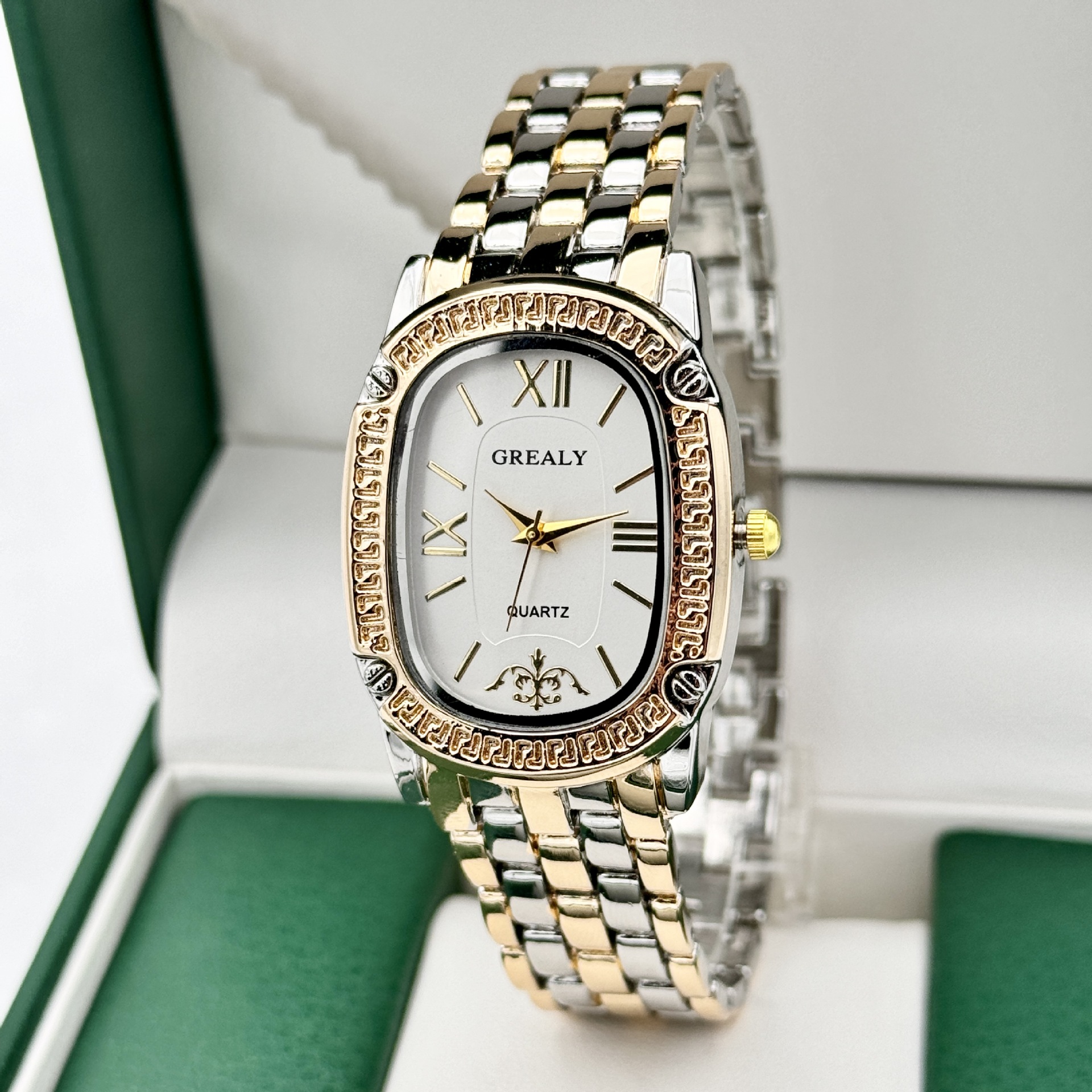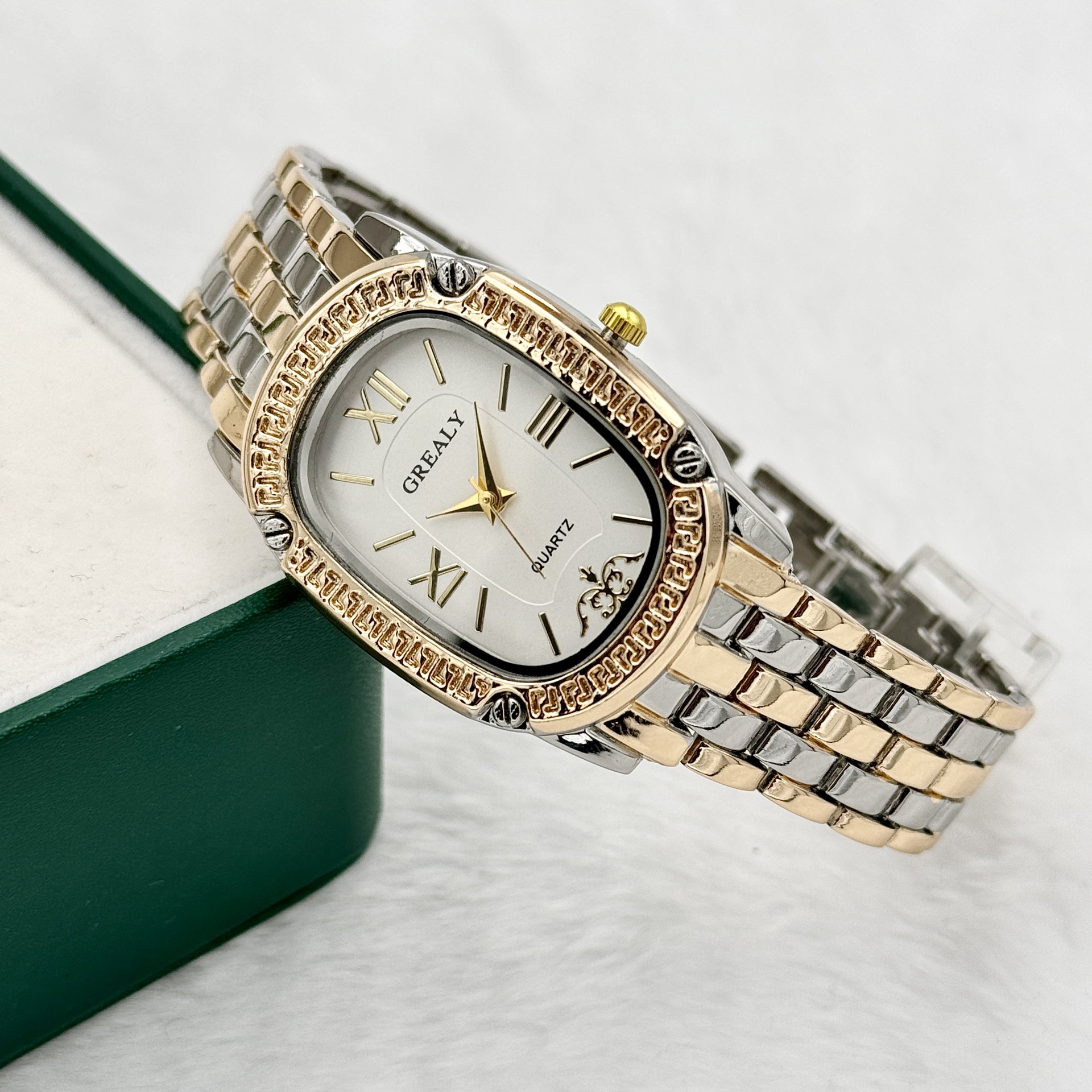ساعة GREALY النسائية الجديدة، التي تتميز بتصميم كوارتز روماني بيضاوي