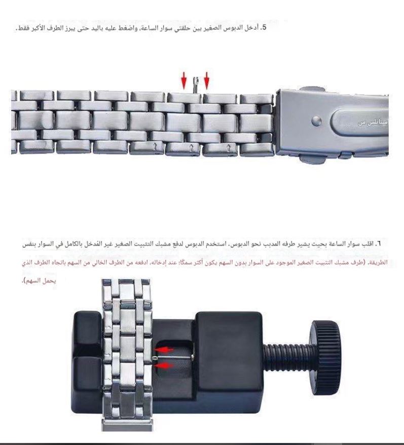 | ميزات خاصة | اداة يدوية صغيرة لإصلاح الساعات، مصنوعة من البلاستيك الأسود، لإزالة سوار الساعة |