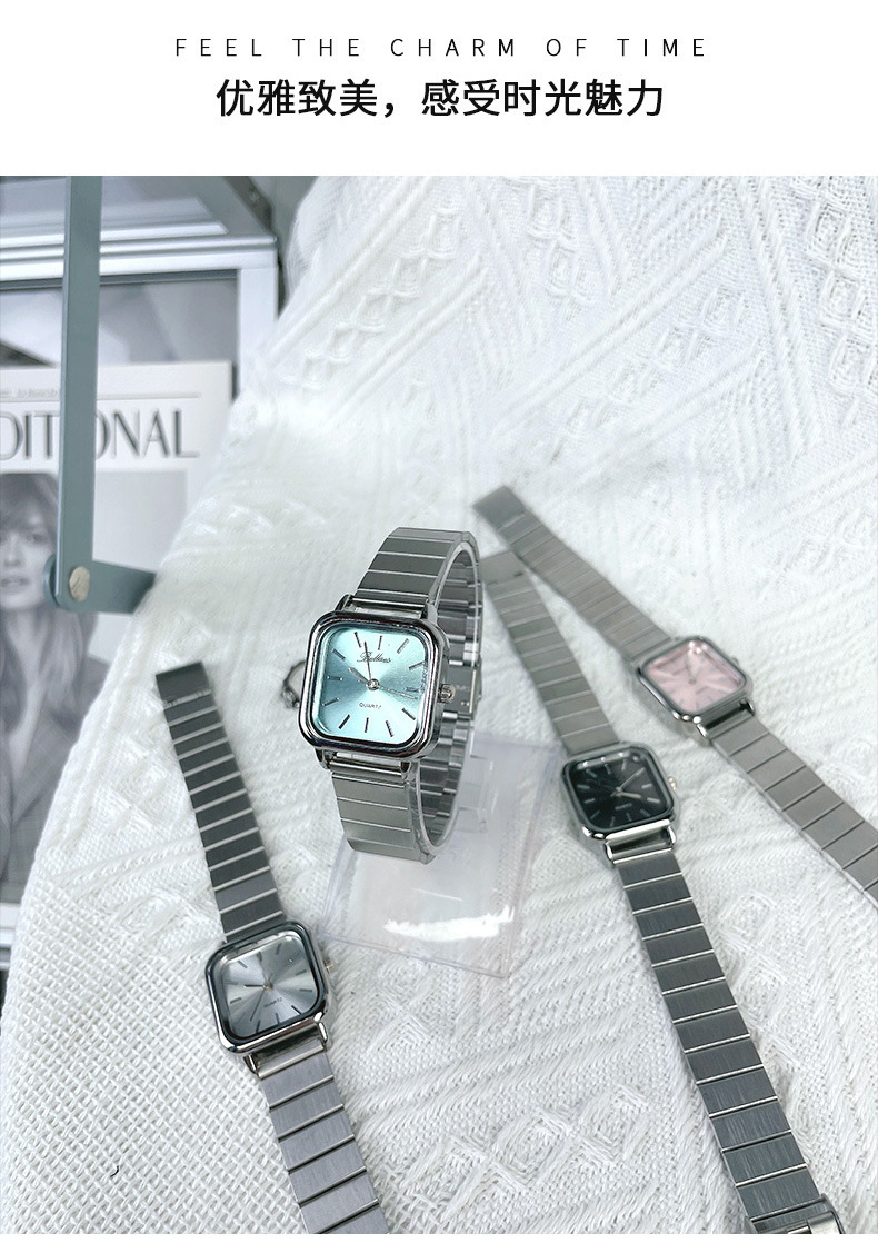 ساعة كوارتز مربعة الشكل بتصميم فني وسوار من الفولاذ المقاوم للصدأ
