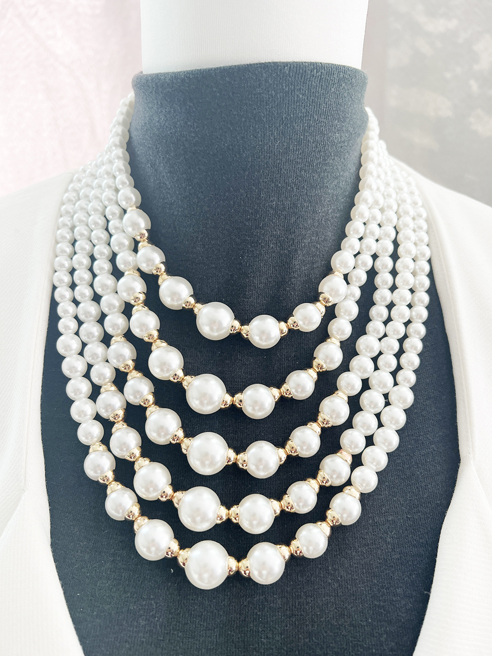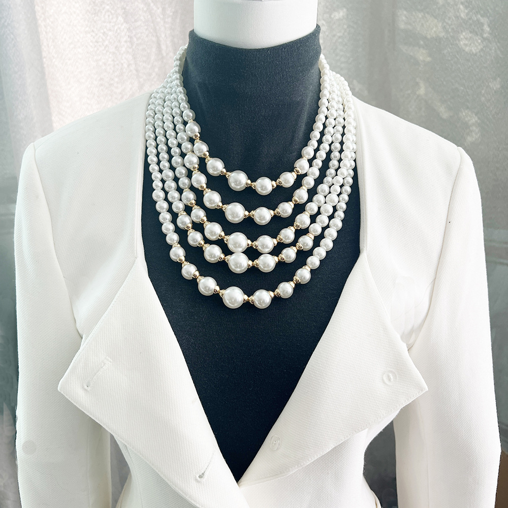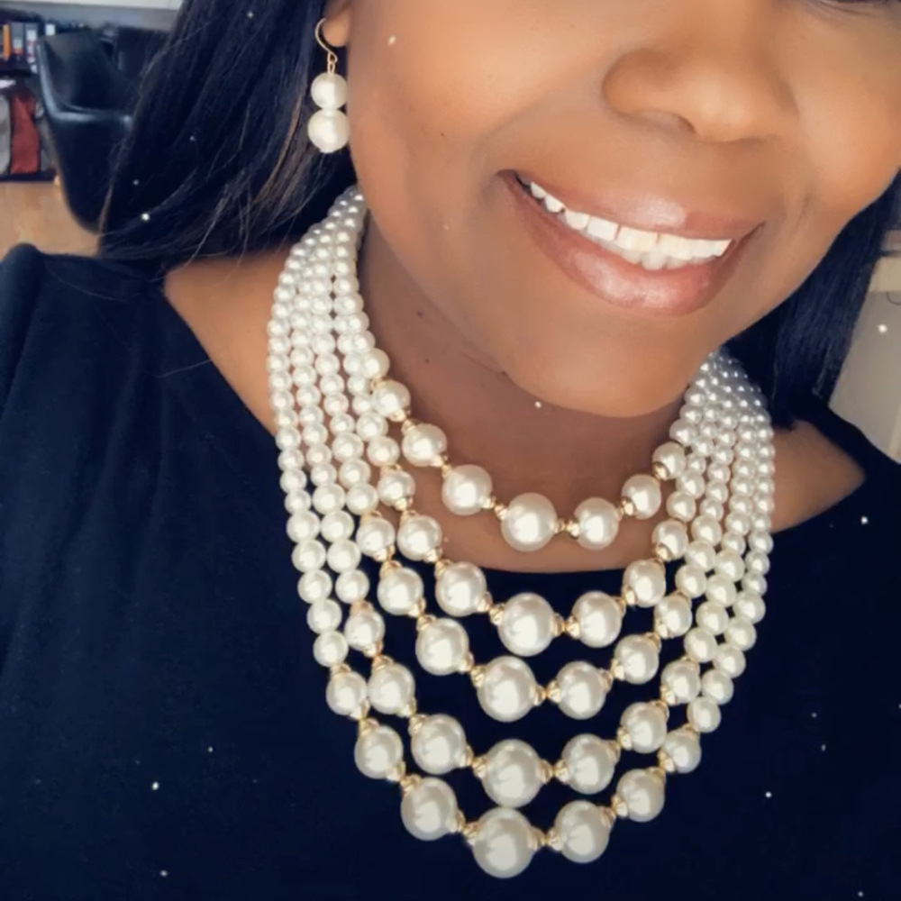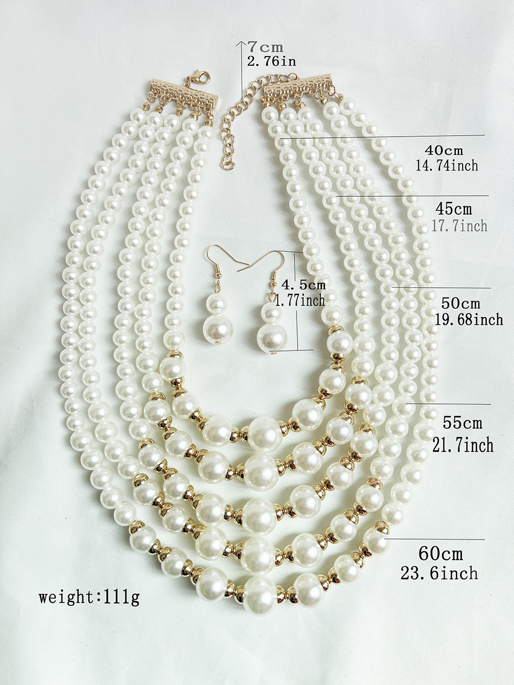 طقم عقد وأقراط من اللؤلؤ متعدد الطبقات