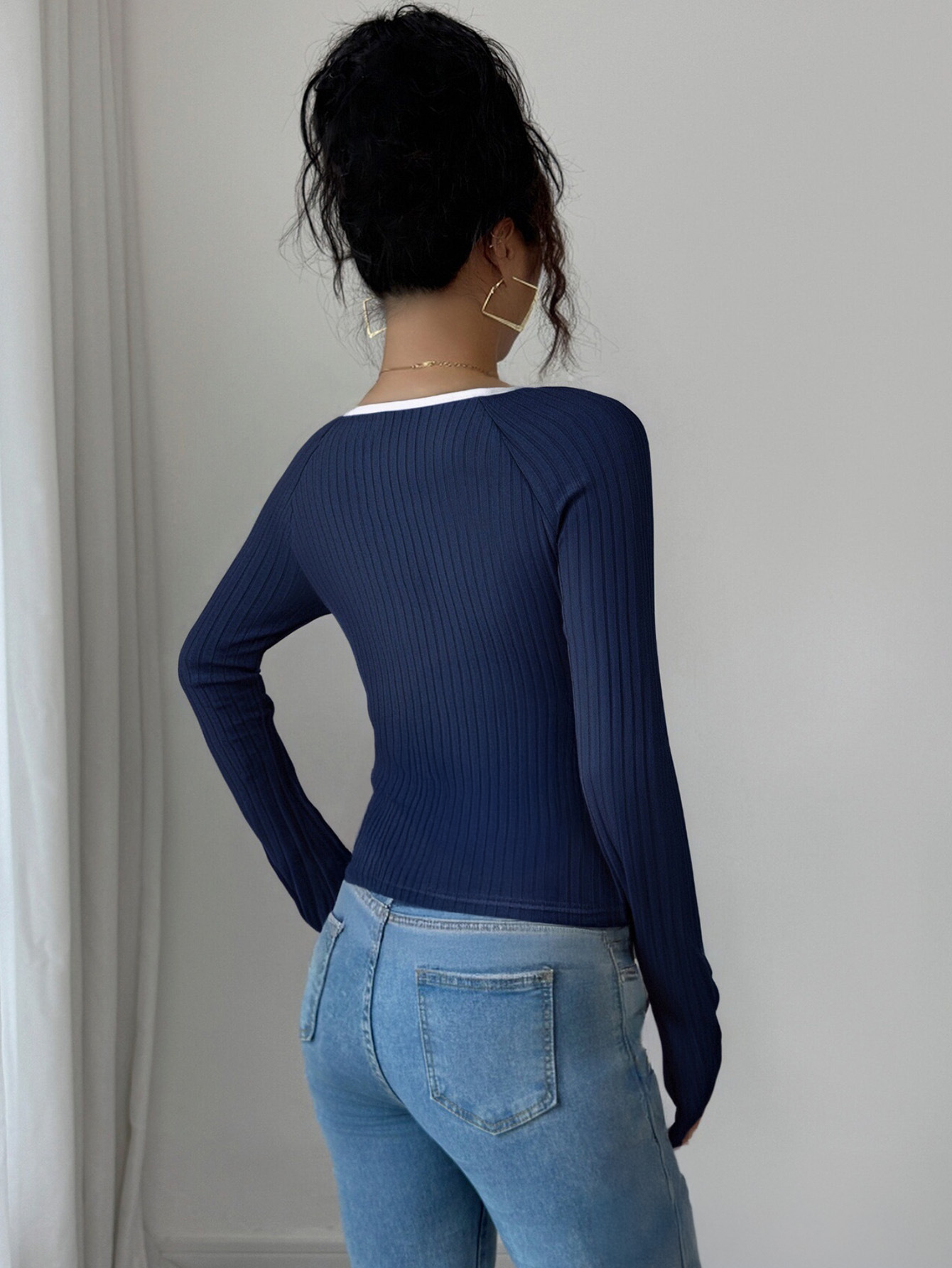 تيشيرت نسائي بأكمام طويلة وقصة ضيقة