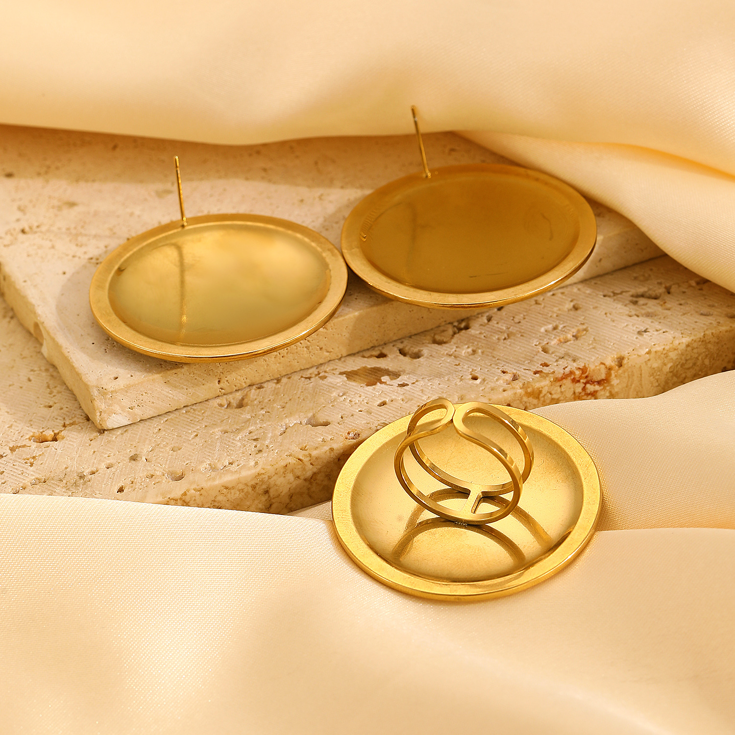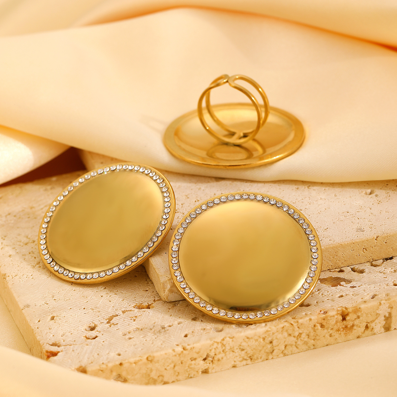 خاتم من الفولاذ المقاوم للصدأ مع أقراط دائرية الشكل
