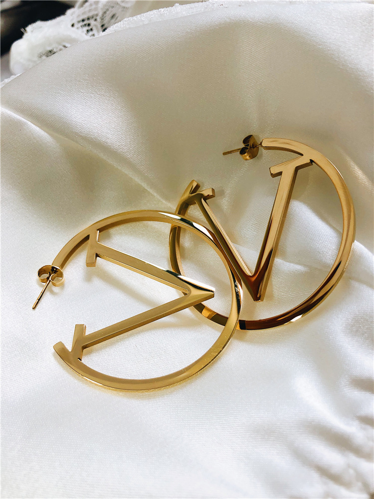 أقراط حلقية كبيرة على شكل حرف V دائرية من الفولاذ