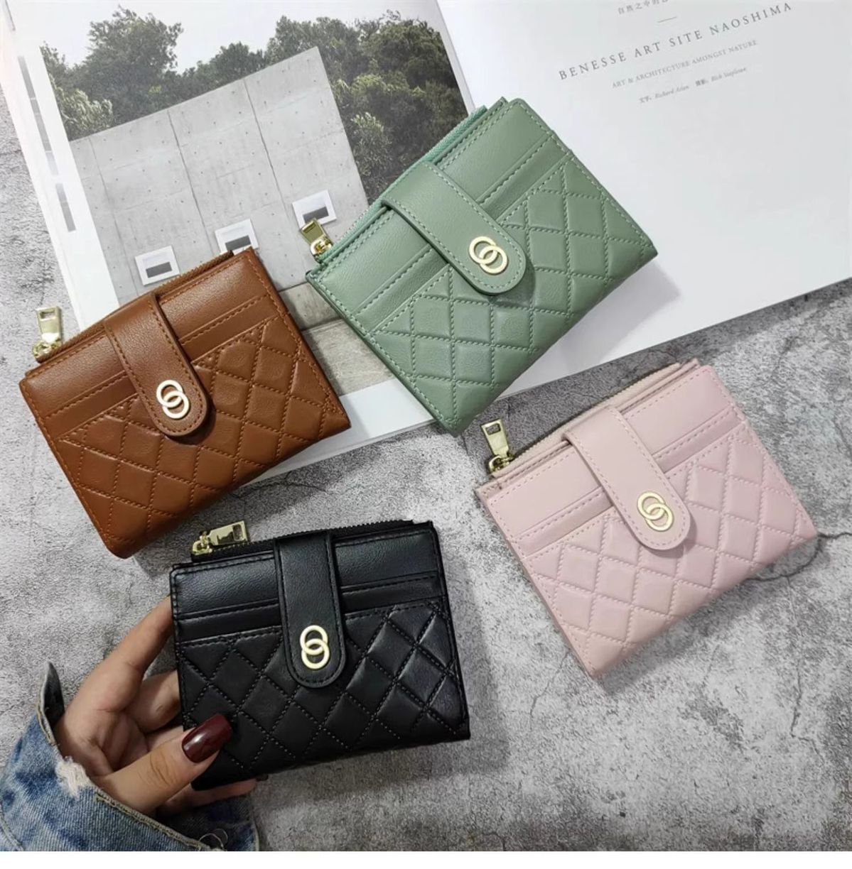 محفظة صغيرة مبطنة كورية قصيرة أنيقة للنساء
