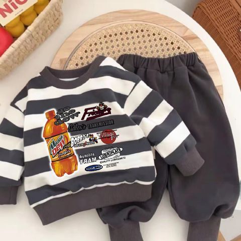طقم ملابس للأولاد مخطط مكون من قطعتين