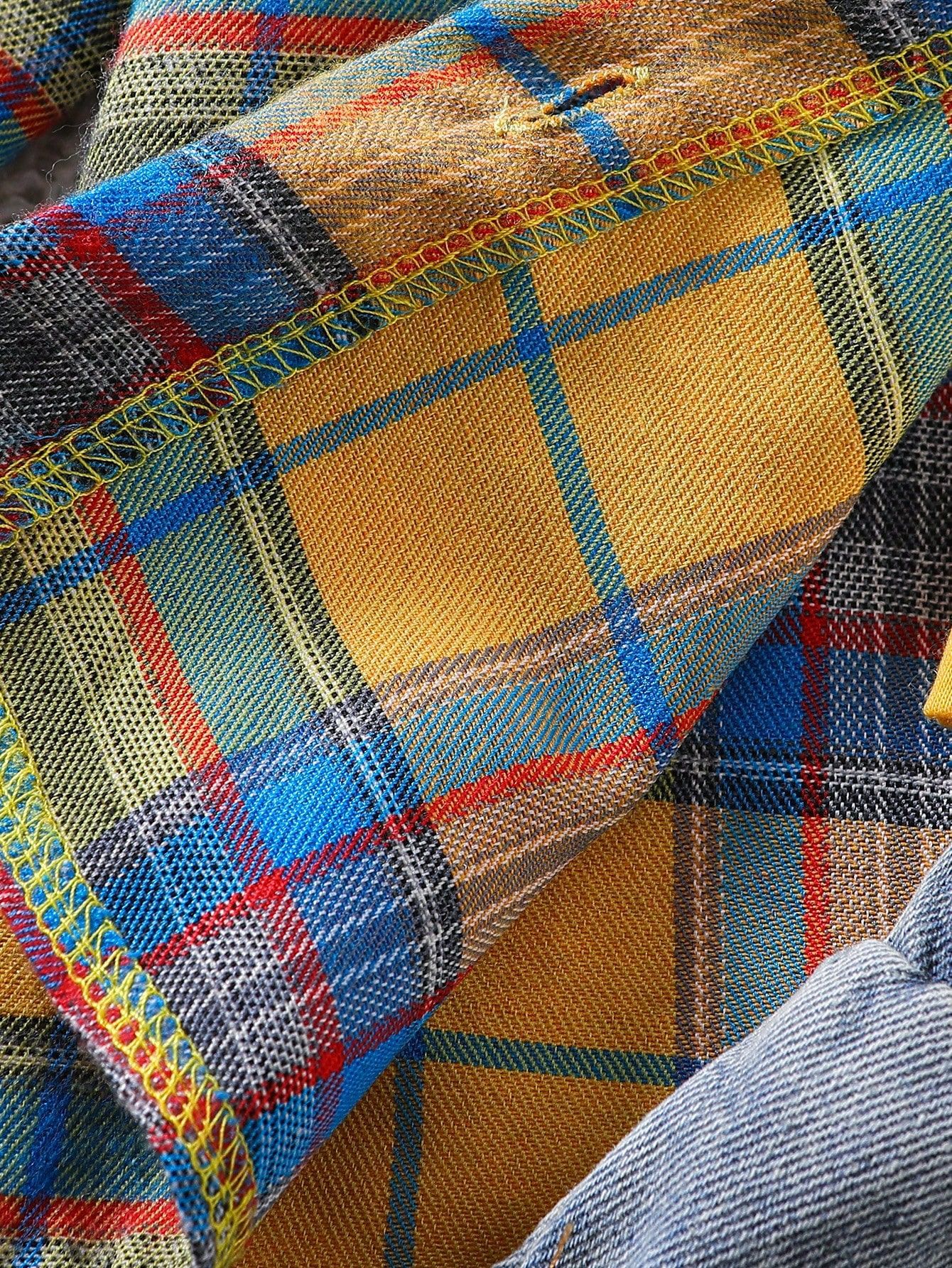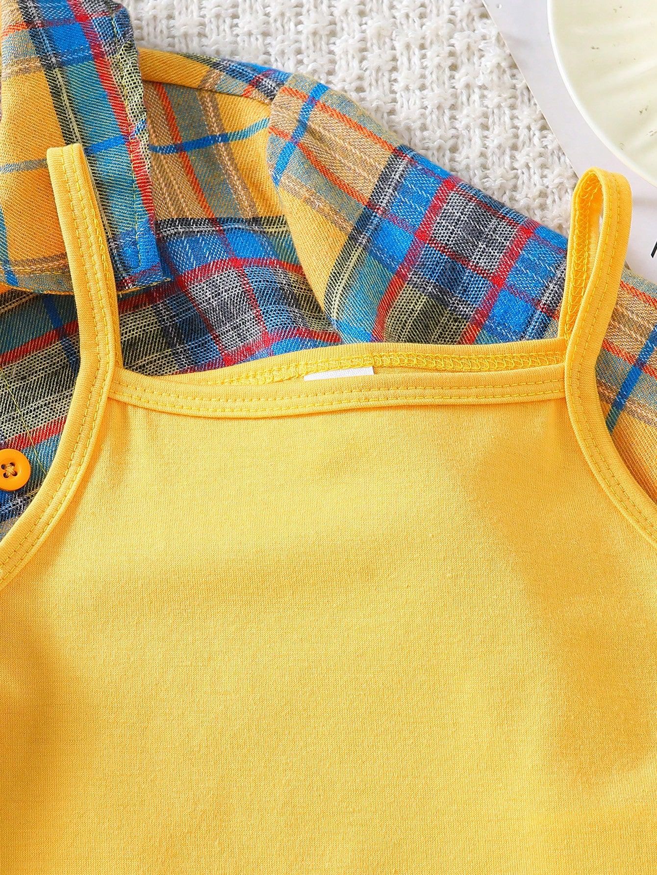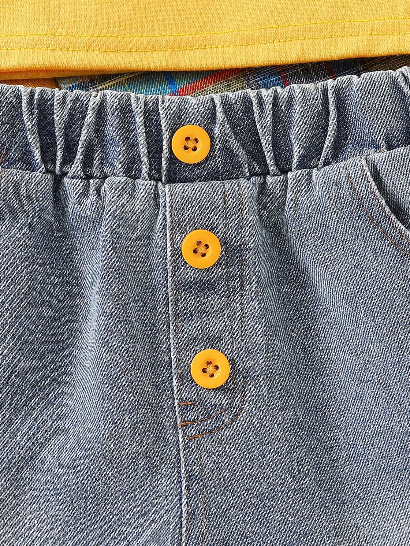 طقم من ثلاث قطع قميص كاروهات بياقة، وقميص داخلي بدون أكمام، وبنطال جينز