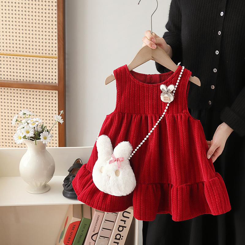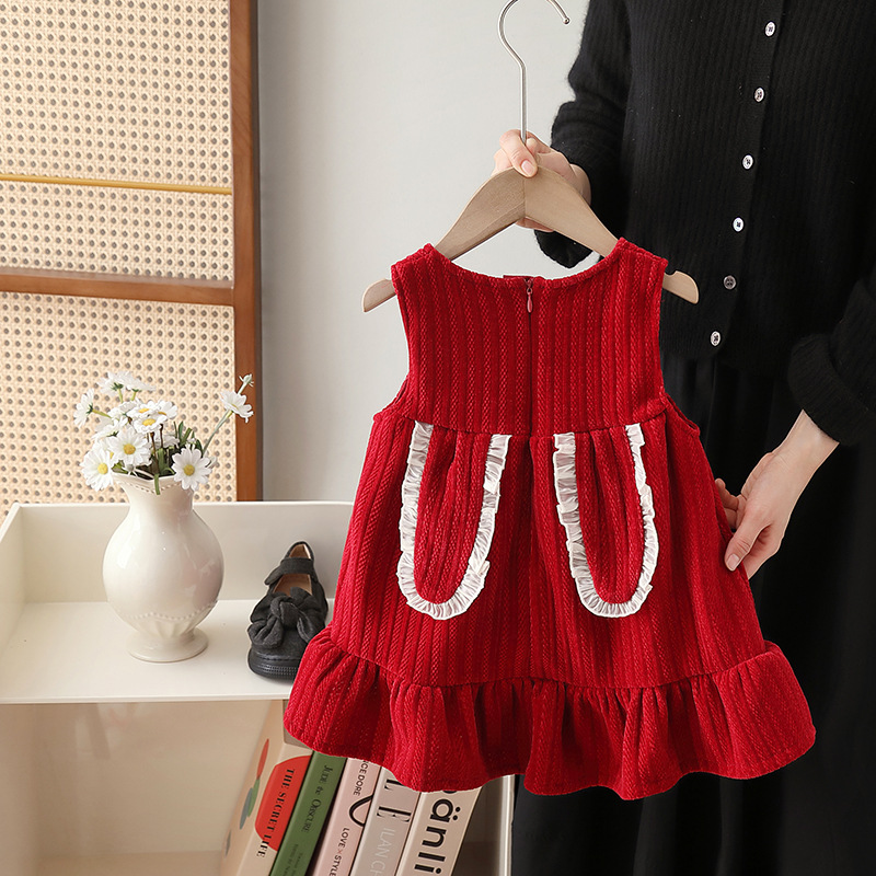 فستان ربيعي للبنات أحمر بدون أكمام