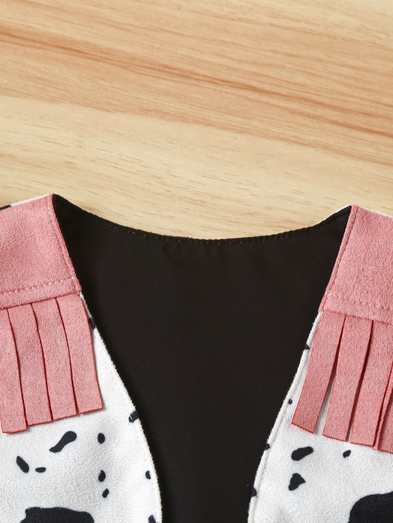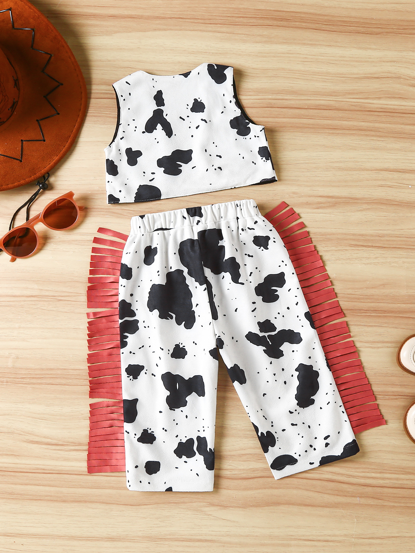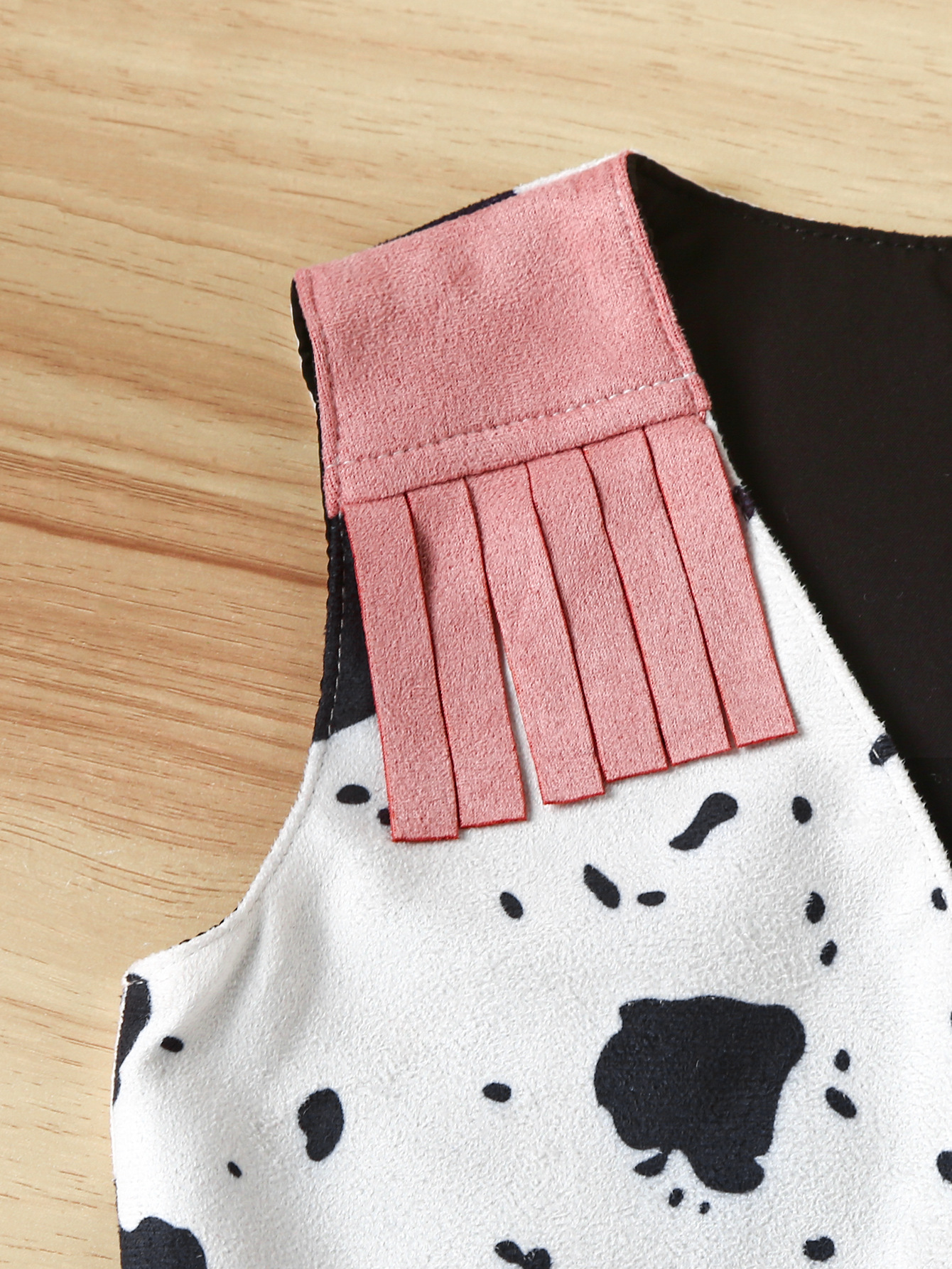 طقم أطفال مكون من قطعتين، صدرية وسروال، مزين بشرابات