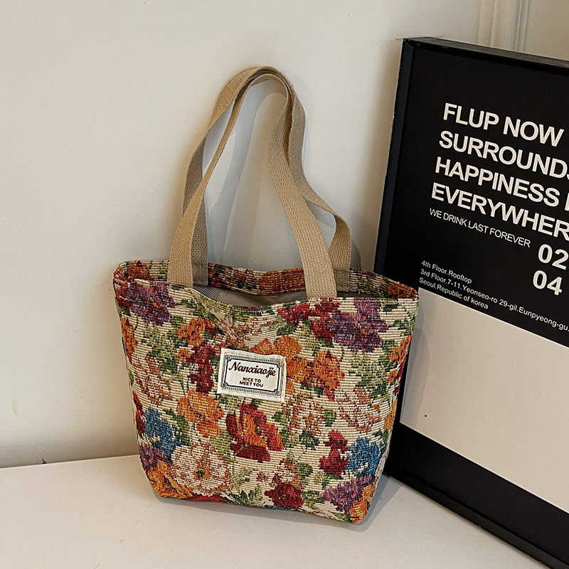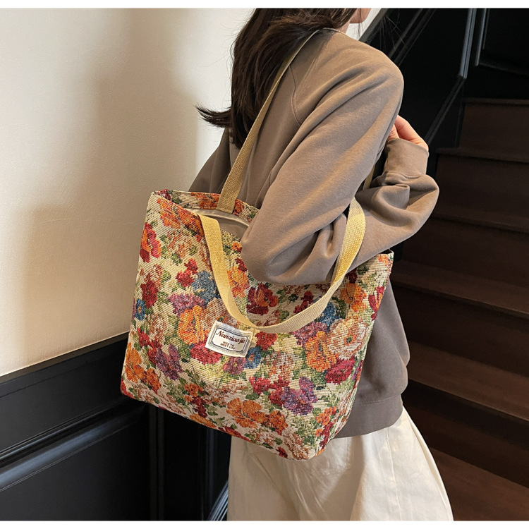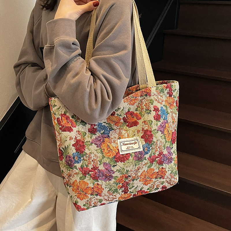 حقيبة كتف قماشية كبيرة الحجم بتصميم صيني للنساء