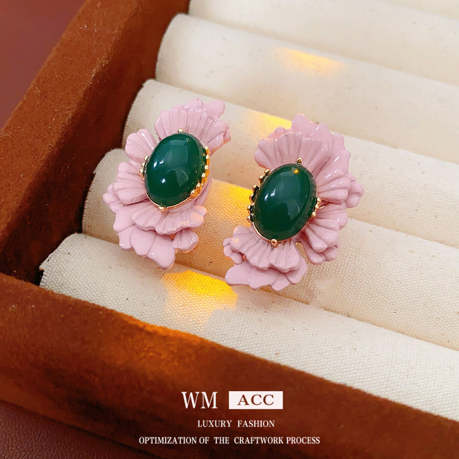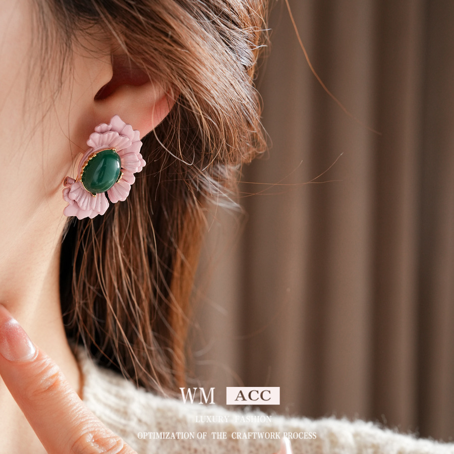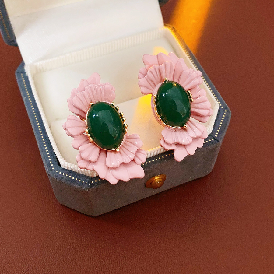 أقراط عتيقة الطراز بإبر فضية، بتصميم زهرة بيضاوية