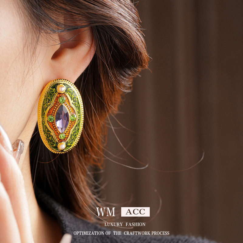 أقراط بيضاوية من اللؤلؤ