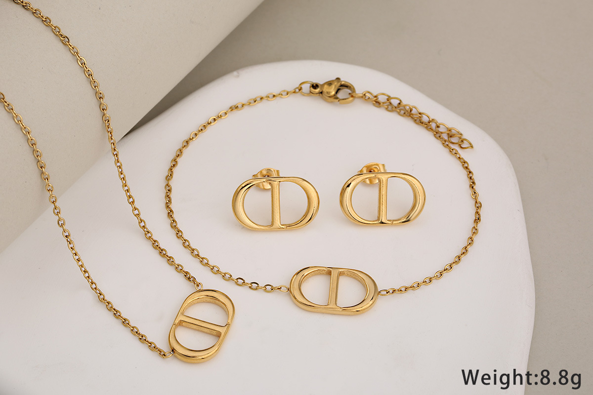 طقم ثلاثي من الأقراط والأساور والقلائد المصنوعة من الفولاذ المقاوم للصدأ وحرف CD