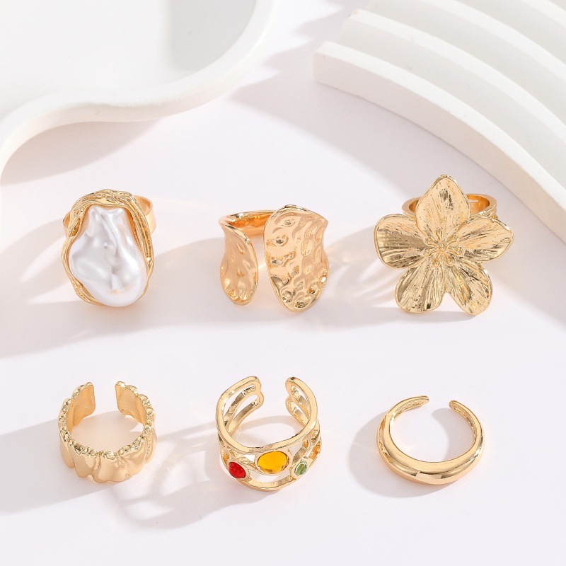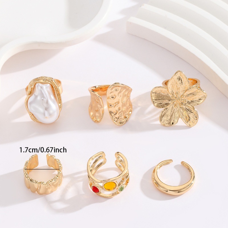 طقم خواتم مفتوح غير منتظم الشكل مصنوع من المعدن على شكل زهرة