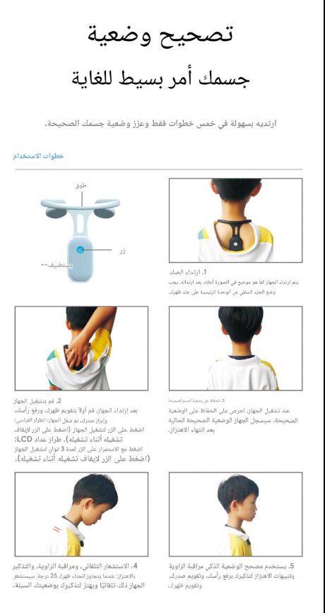 مصحح وضعية الجسم المصنوع من السيليكون، مزود بتقنية الاستشعار التلقائي الذكي، لتصحيح شكل الجسم ومنع انحناء الظهر لدى البالغين والأطفال