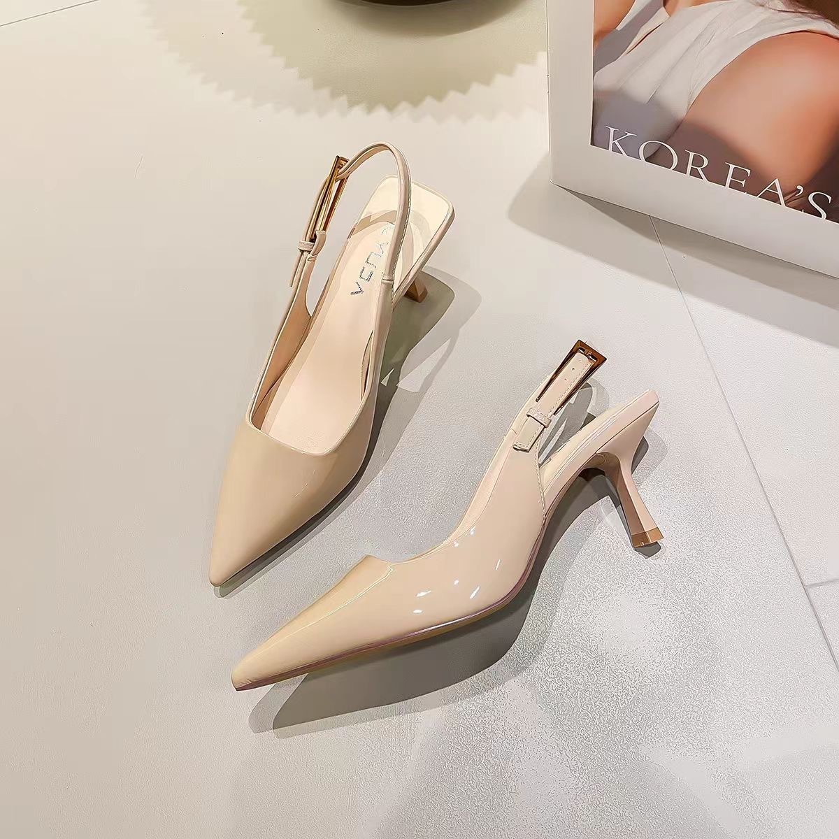 أحذية نسائية بكعب عالٍ مقدمة مدببة، ظهر مفتوح