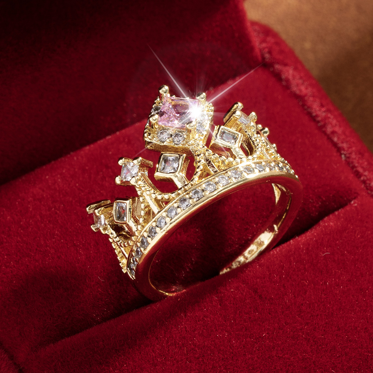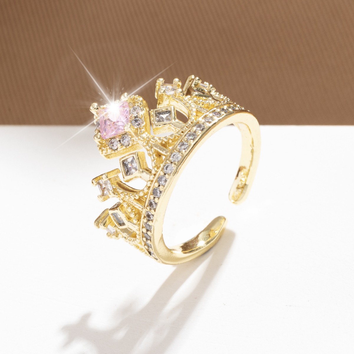 خاتم تاج وردي جميل للنساء قابل للتعديل